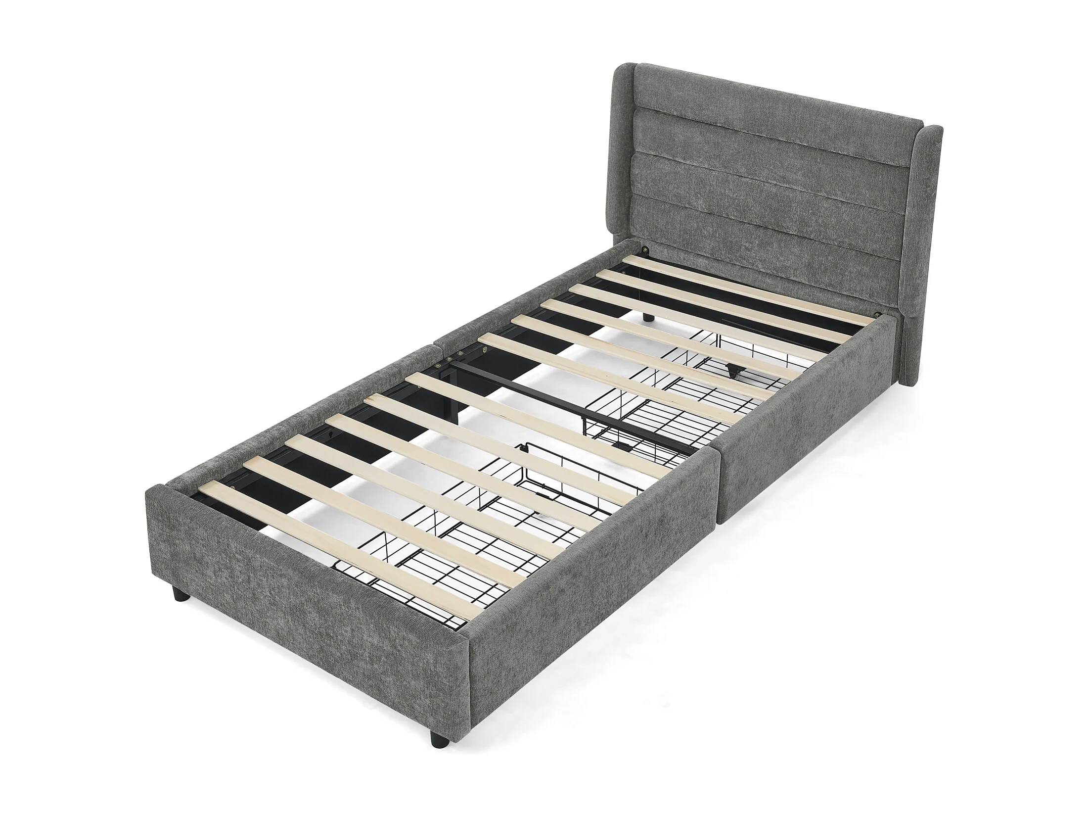 Einzelbett 90×200 cm aus weichem Samt, Kinderbett mit hoher Rückenlehne, ideal fürs Kinderzimmer – Dunkelgrau