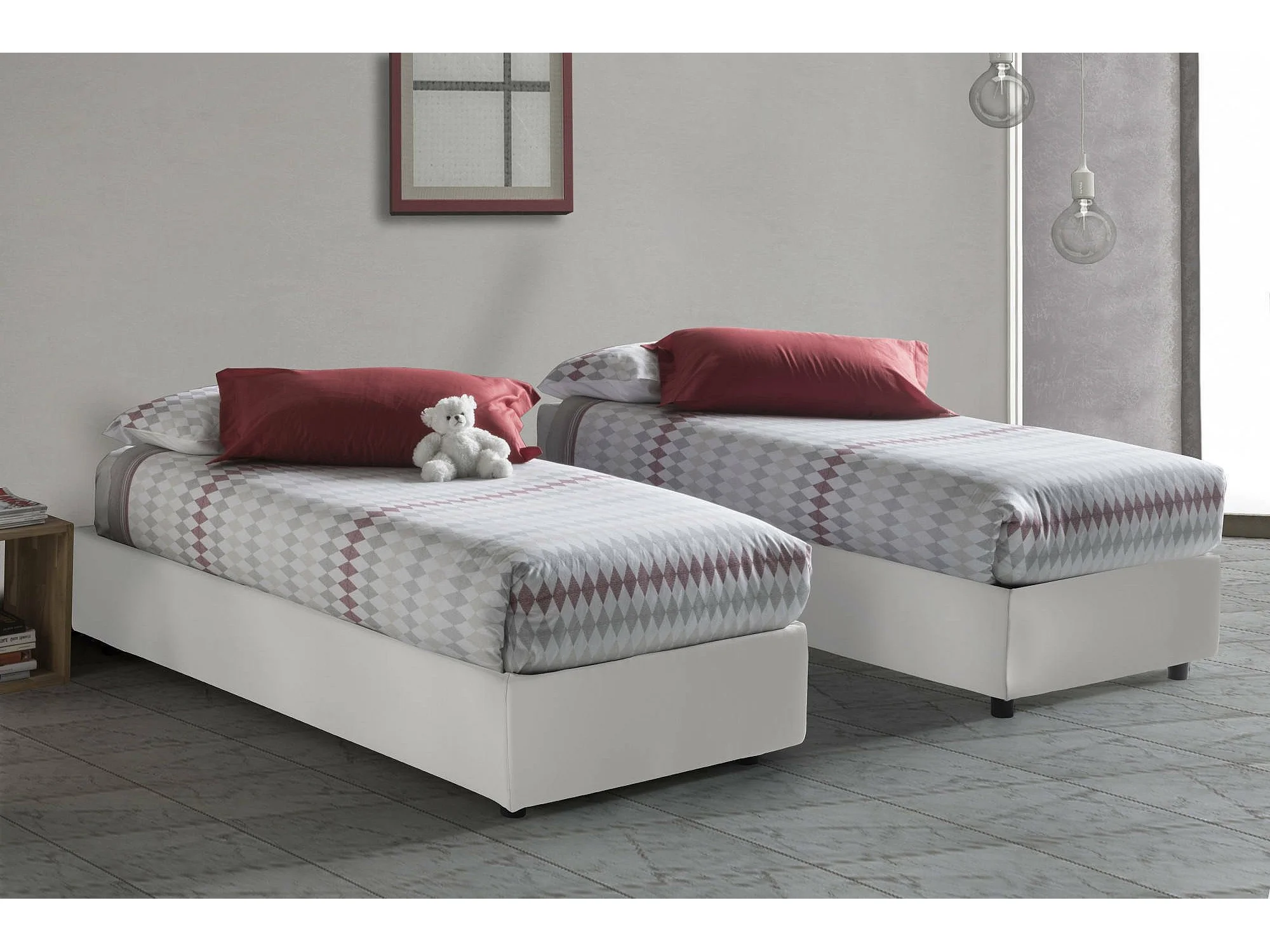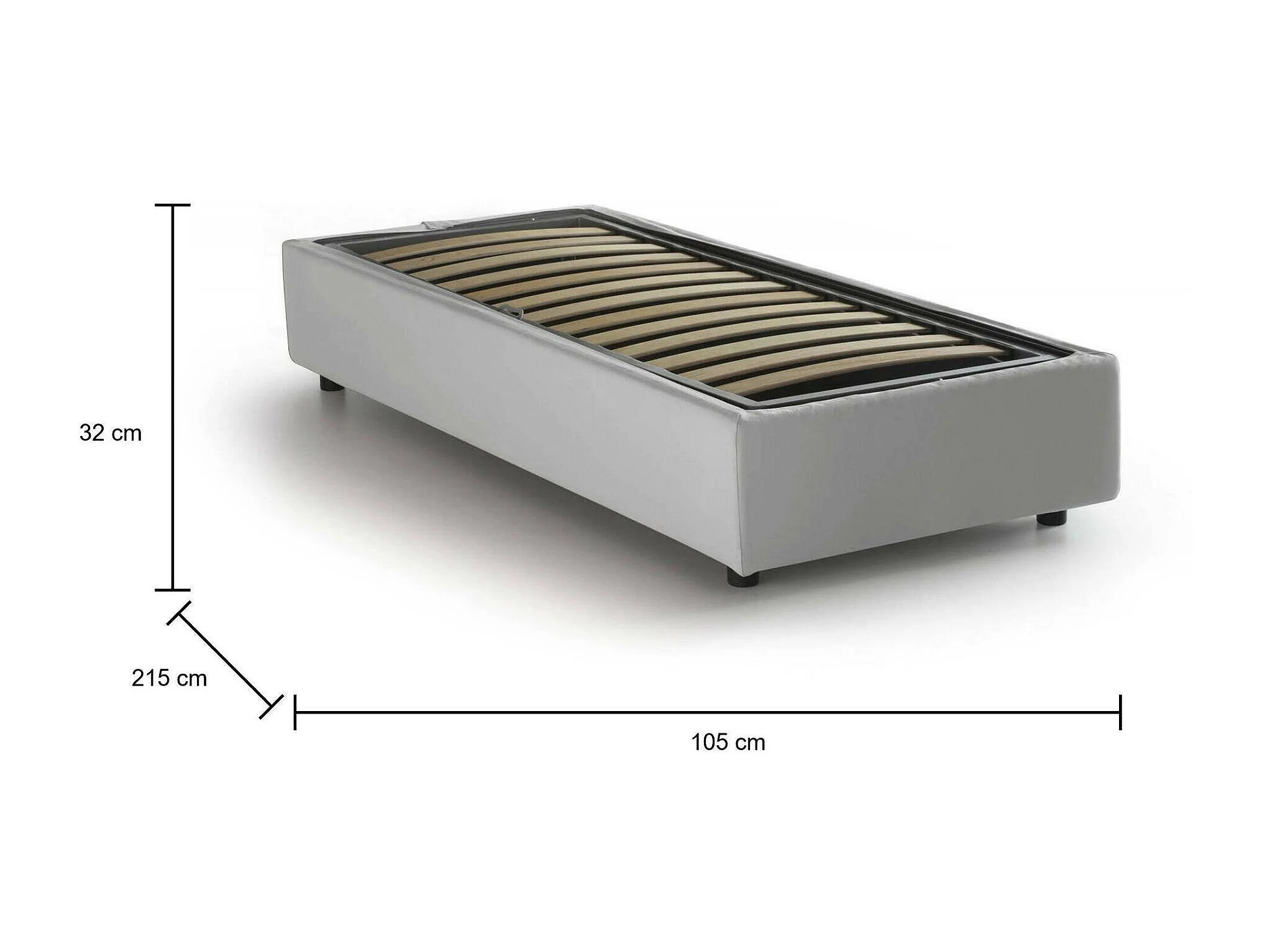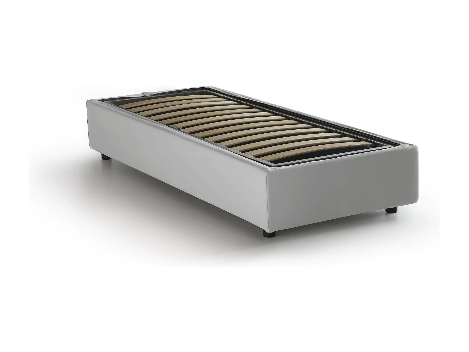 Einzelbett Dginulf, Containerbett mit Kunstlederbezug, 100% Made in Italy, Frontöffnung, passend für Matratze Cm 90x200, Weiß