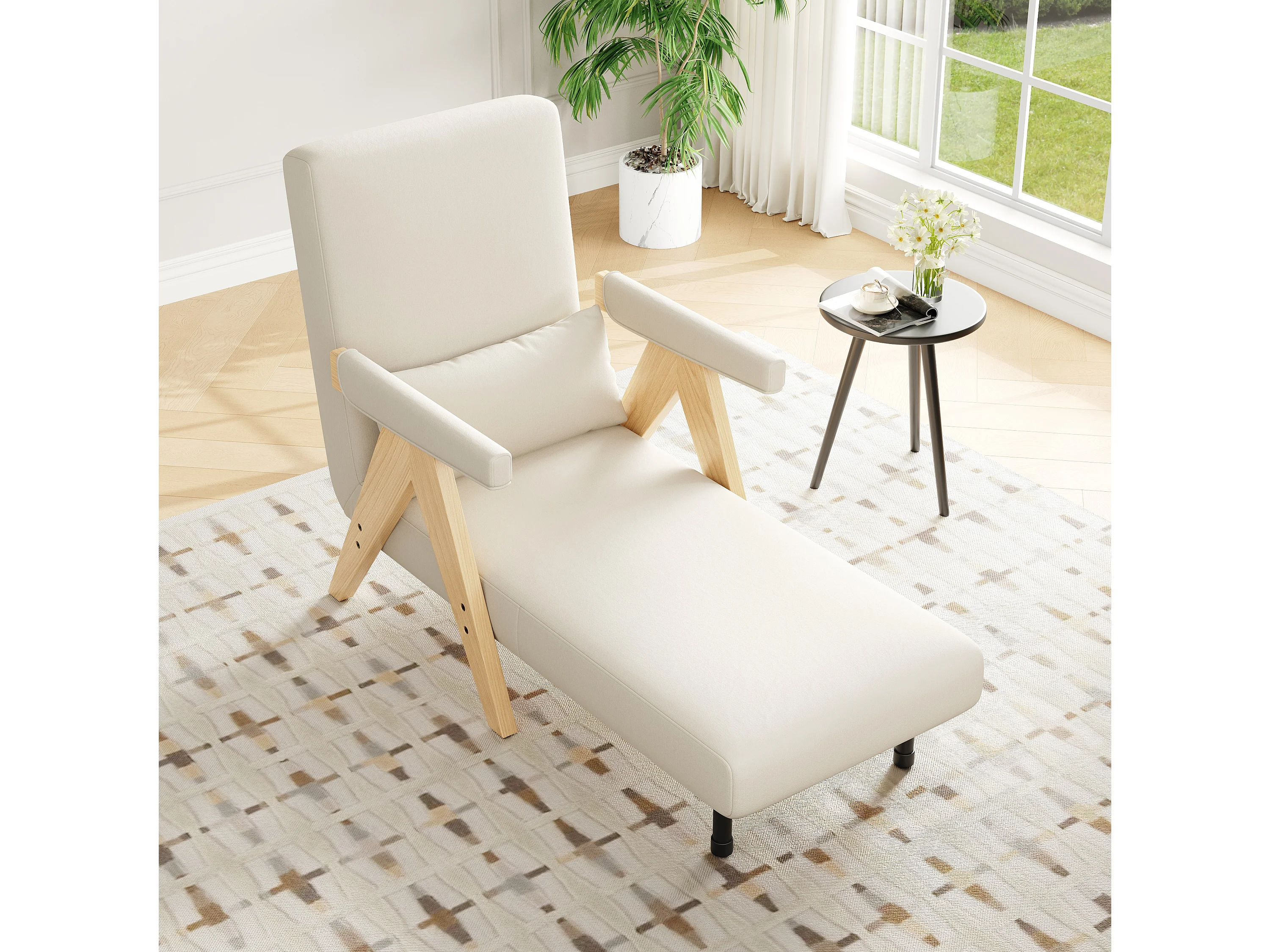 Einzelsessel 64x68,5x93 cm - 3-in-1 umbaubar - gepolstert - Leinen - beige + natur