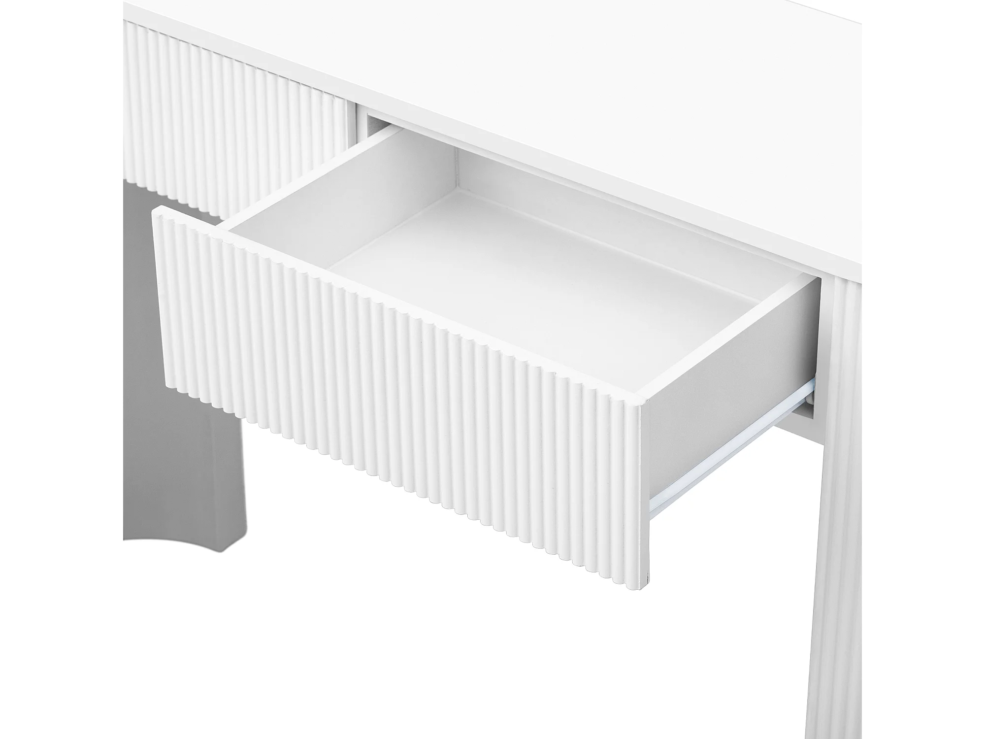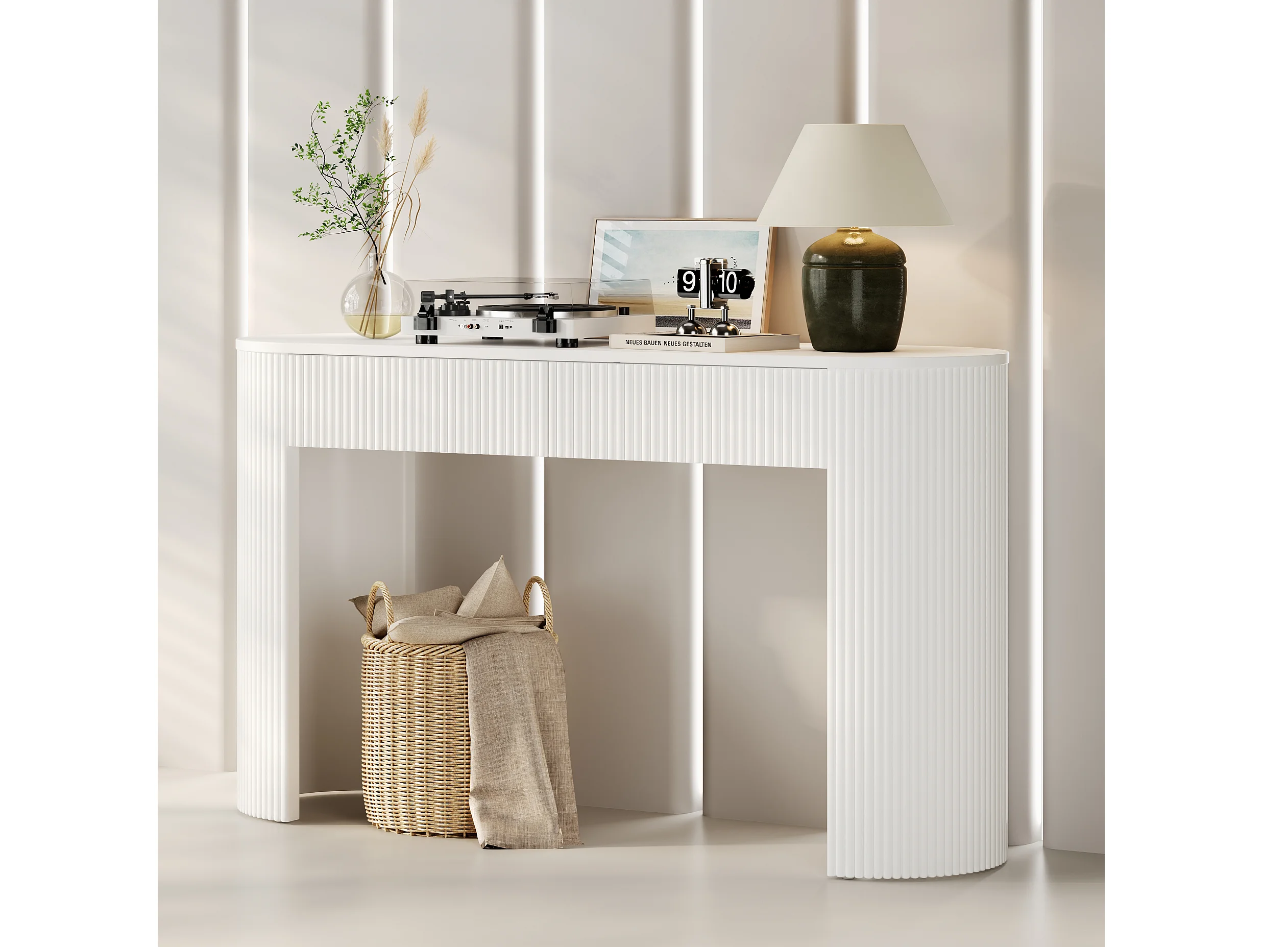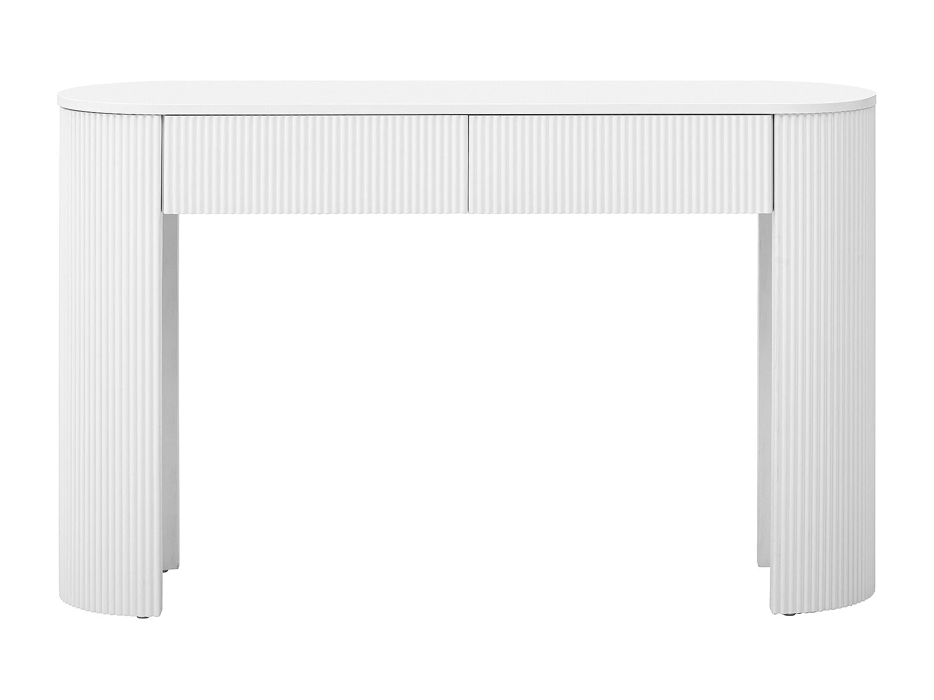 Eleganter Konsolentisch für den Eingangsbereich – 120 x 33 x 76 cm – mit 2 Schubladen und geschwungener Front – MDF – weiß