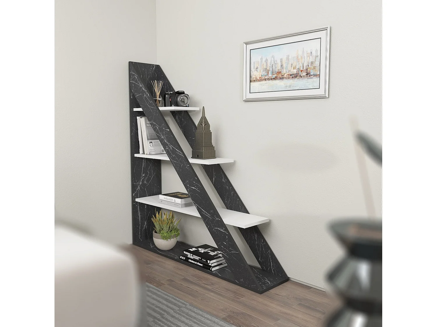 Skandinavisches Regal – 51,8 x 70 x 25 cm – Anthrazit und Weiß – Melamin