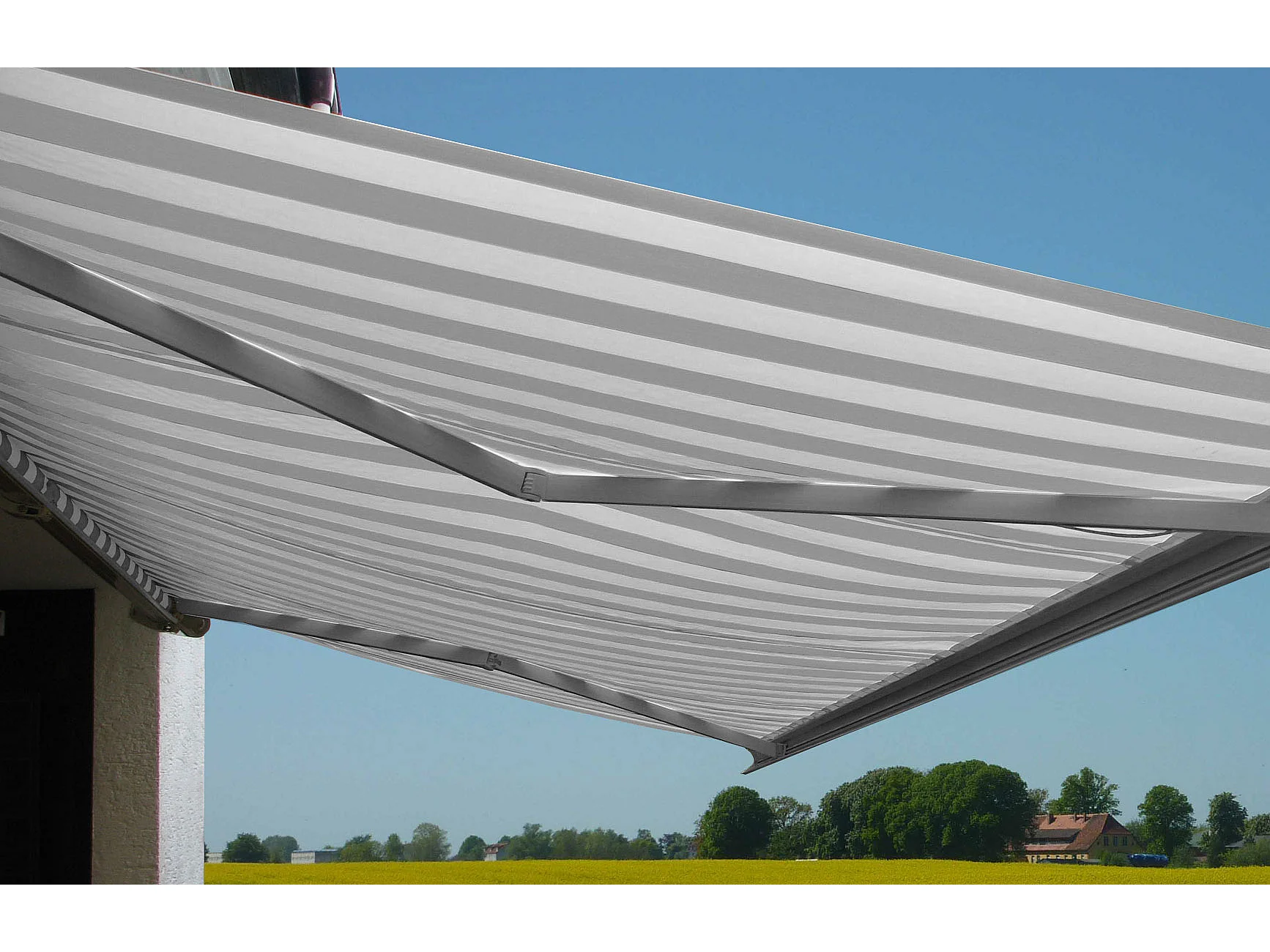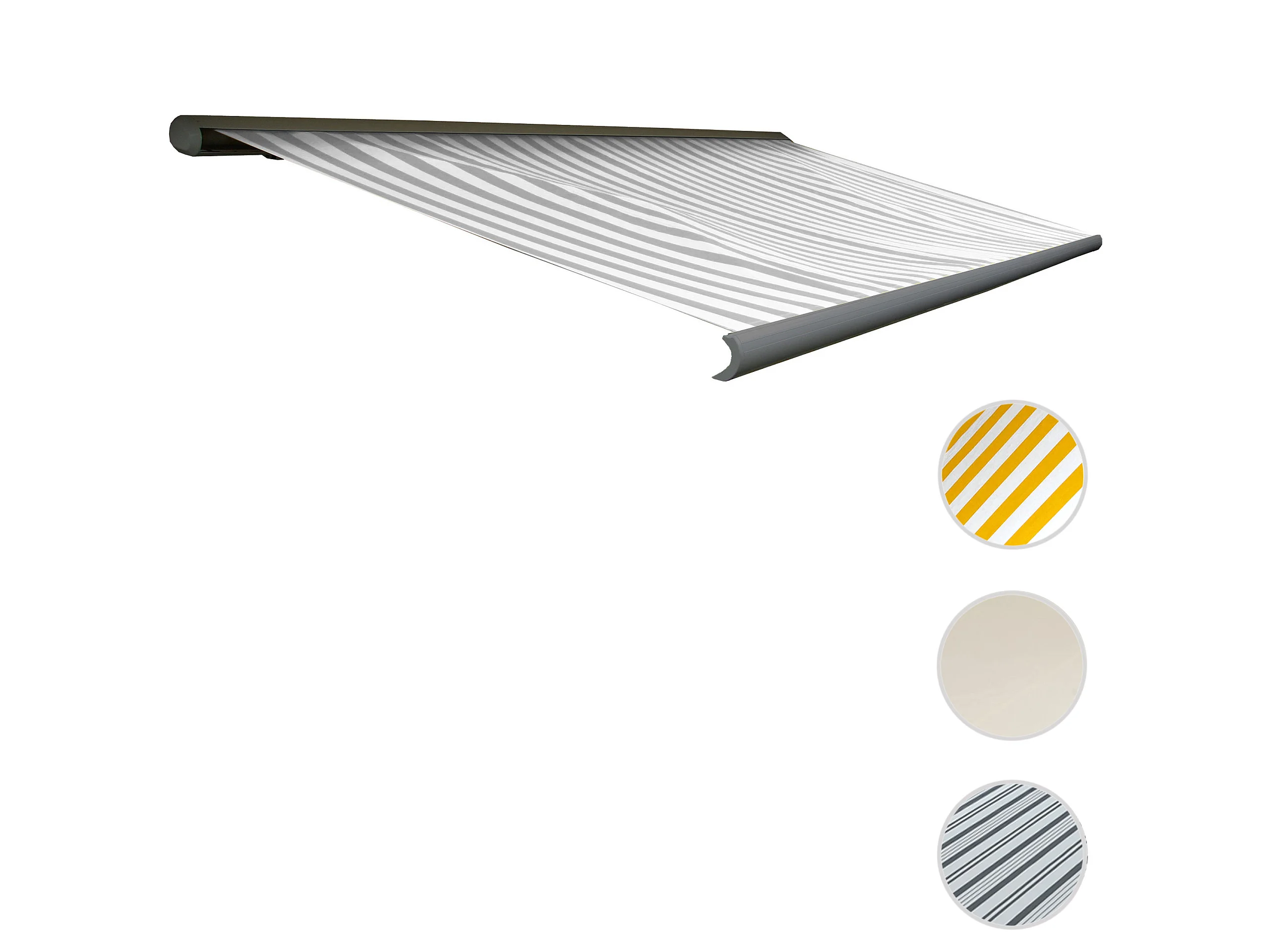 Elektrische Kassettenmarkise H122, Acryl Grau/Weiß, Rahmen grau