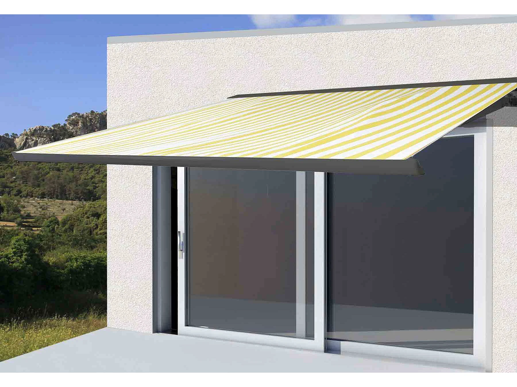 Elektrische Kassettenmarkise H122, Polyester Gelb/Weiß, Rahmen anthrazit