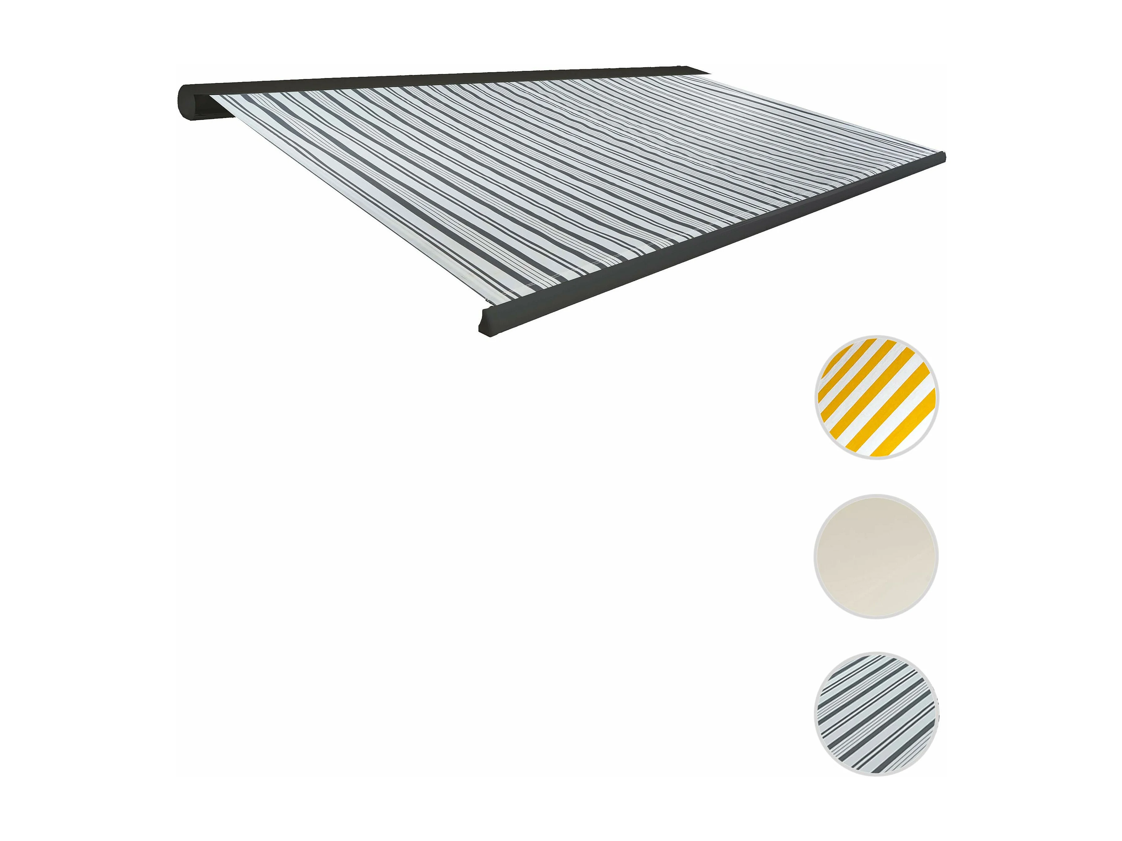 Elektrische Kassettenmarkise H122, Polyester Grau/Weiß, Rahmen anthrazit