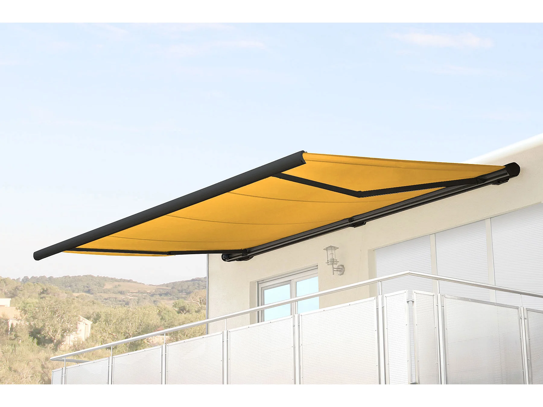 Elektrische Kassettenmarkise H123, Polyester gelb, Rahmen anthrazit