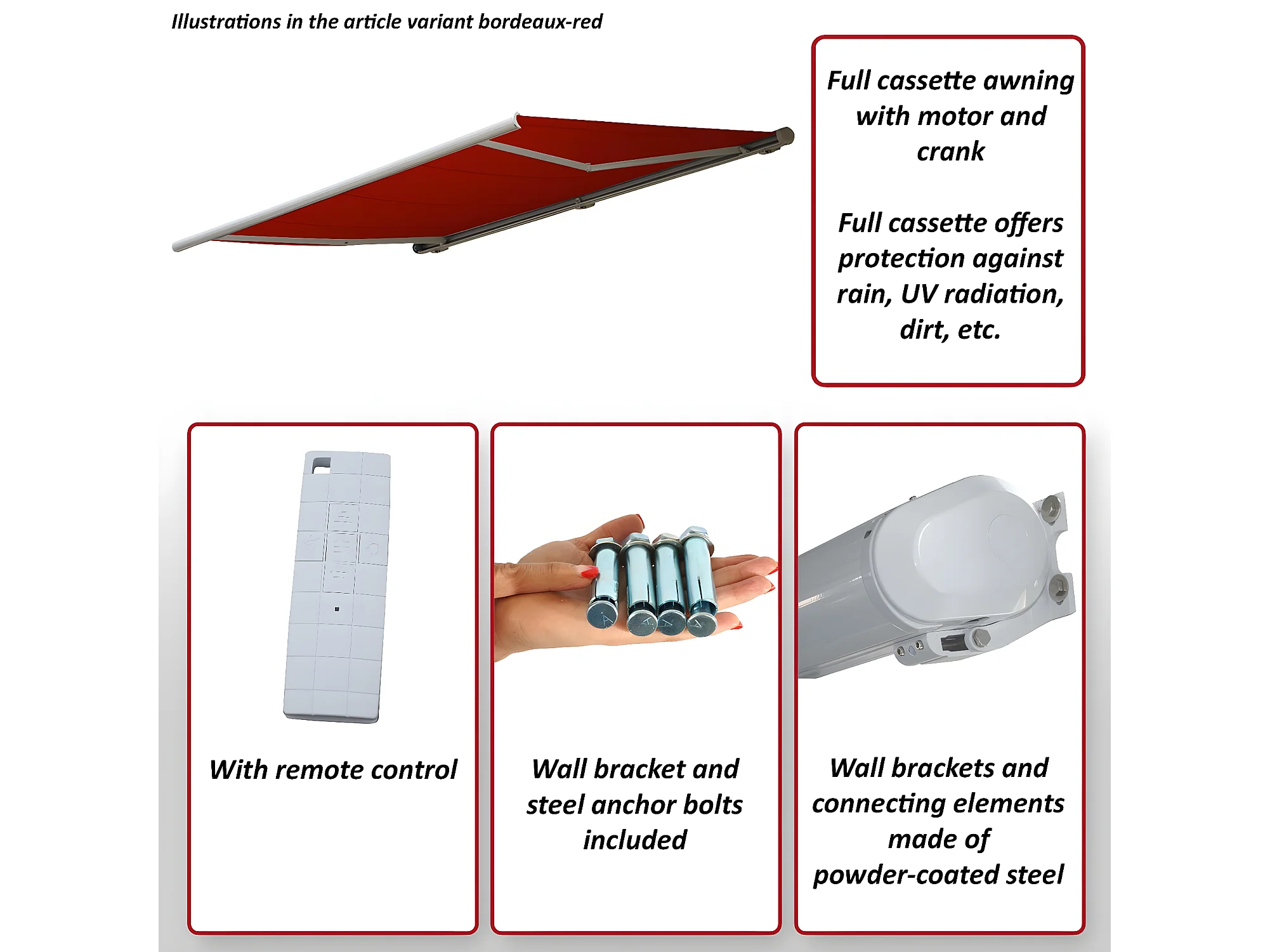 Elektrische Kassettenmarkise H124, Polyester Creme, Rahmen grau