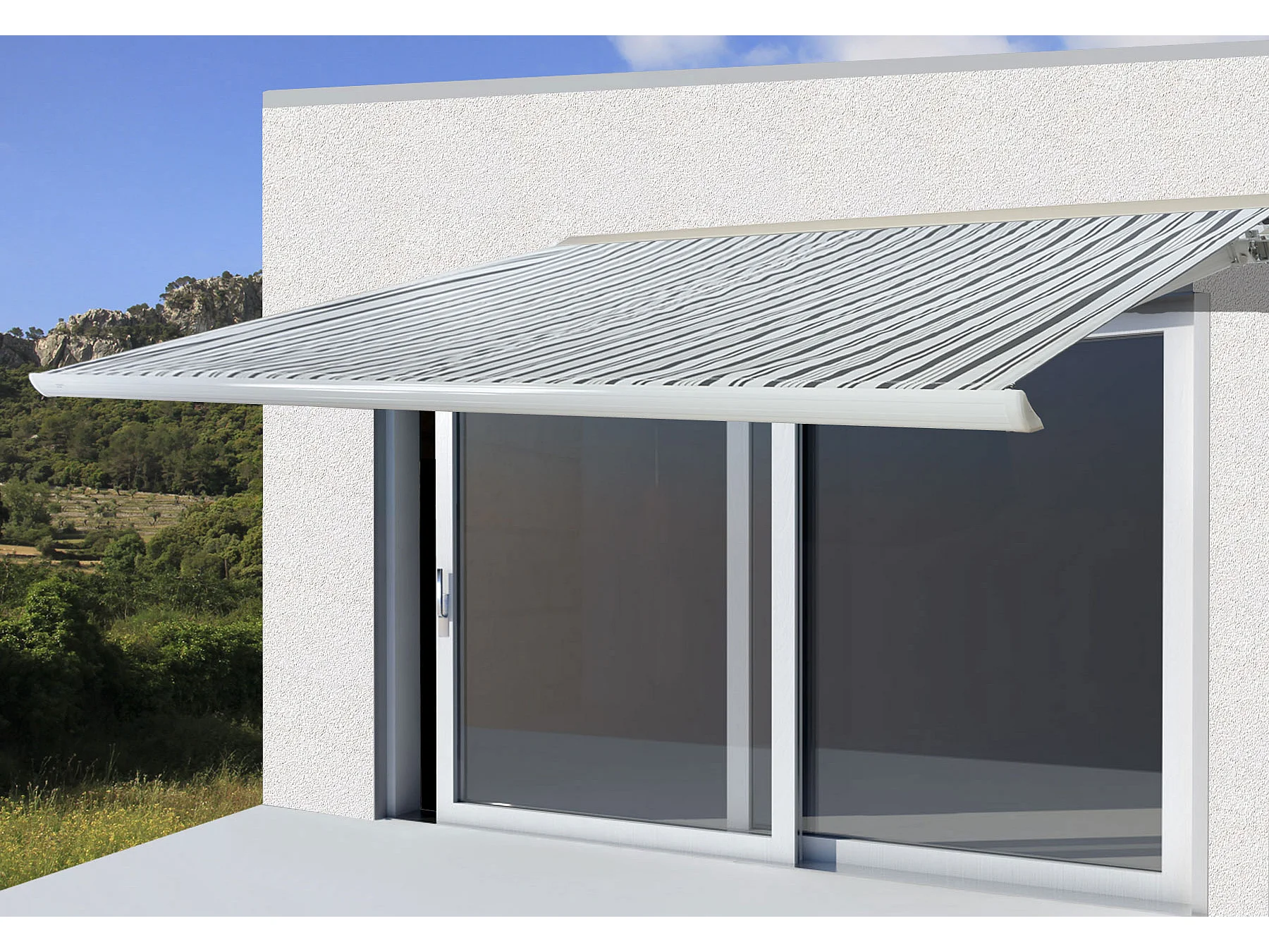 Elektrische Kassettenmarkise H124, Polyester Grau/Weiß