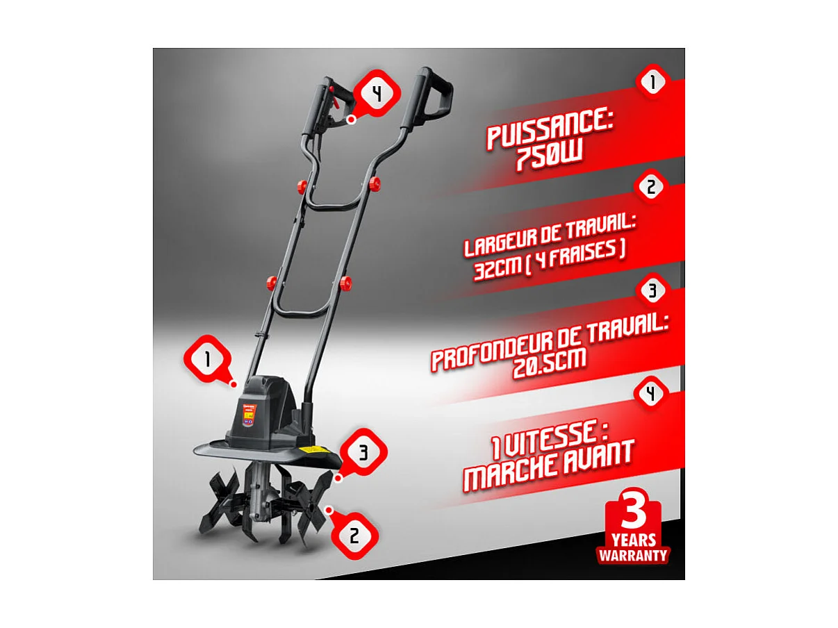 Elektro-Motorhacke mit 4 Fräsen 750 W