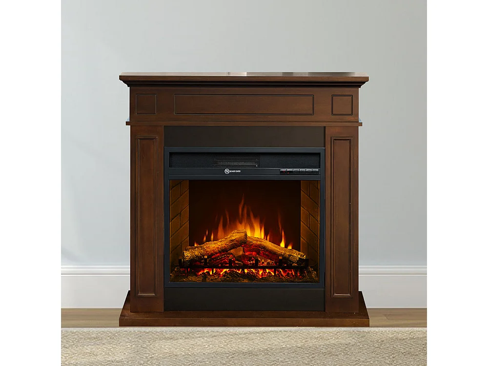 Elektrokamin JEFFERSON Standkamin aus Walnussholz L 89,5 x H 90,5 x T 28