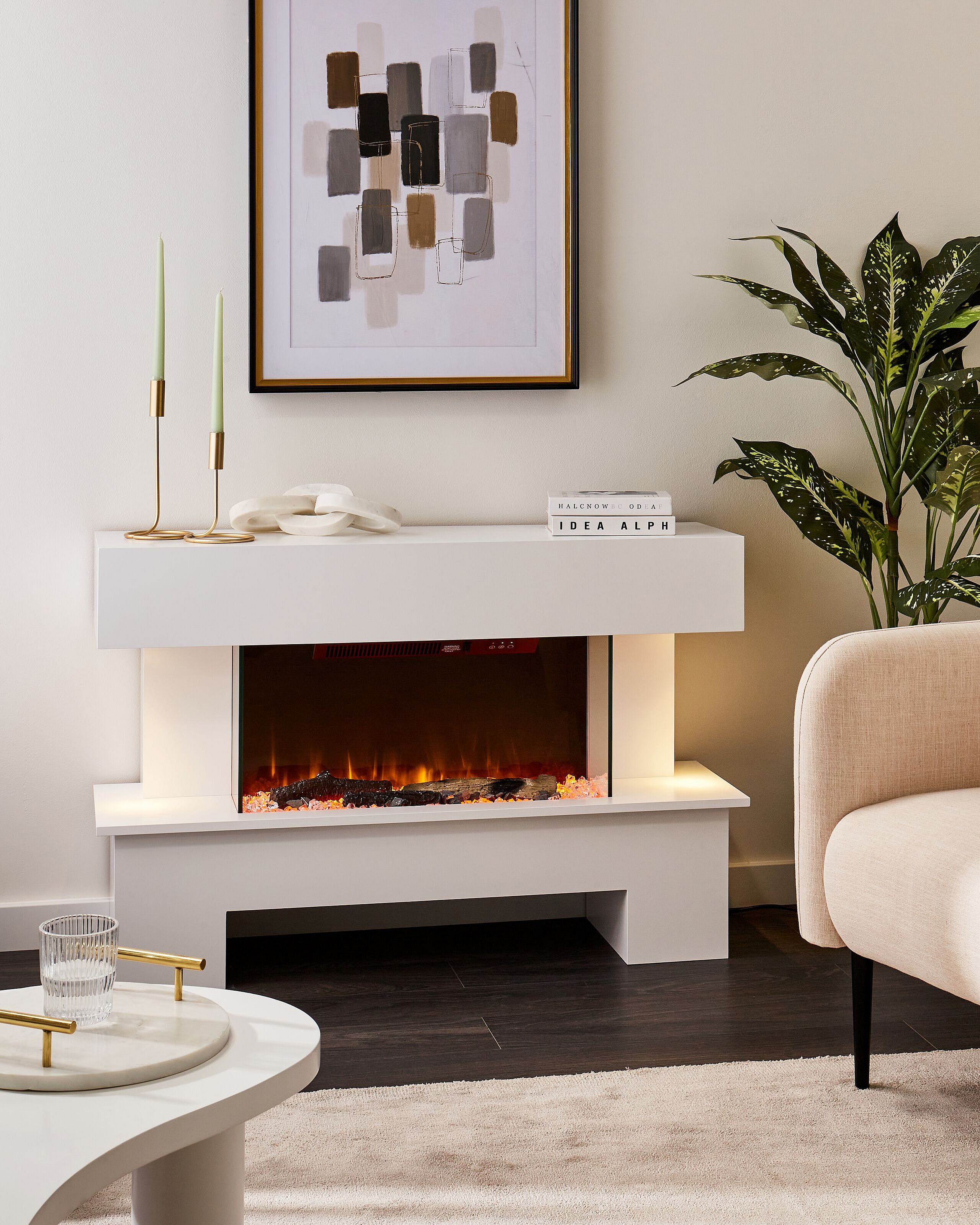 Elektrokamin mit Heizfunktion KALAHARI mit Fernbedienung Weiss