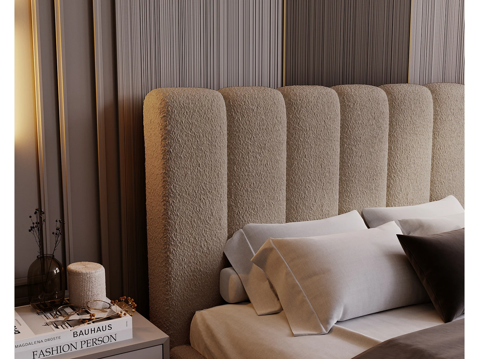 Emporius Polsterbett Bouclé 160x200 Valetta - Bett mit Bettkasten, Lattenrost & Kopfteil - Hersteller, Doppelbett 160x200 (Braun - Anthology 5)