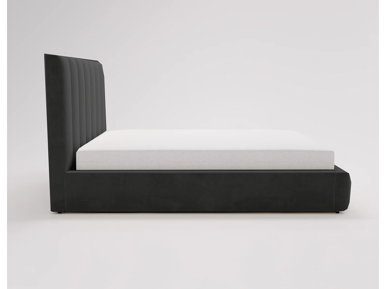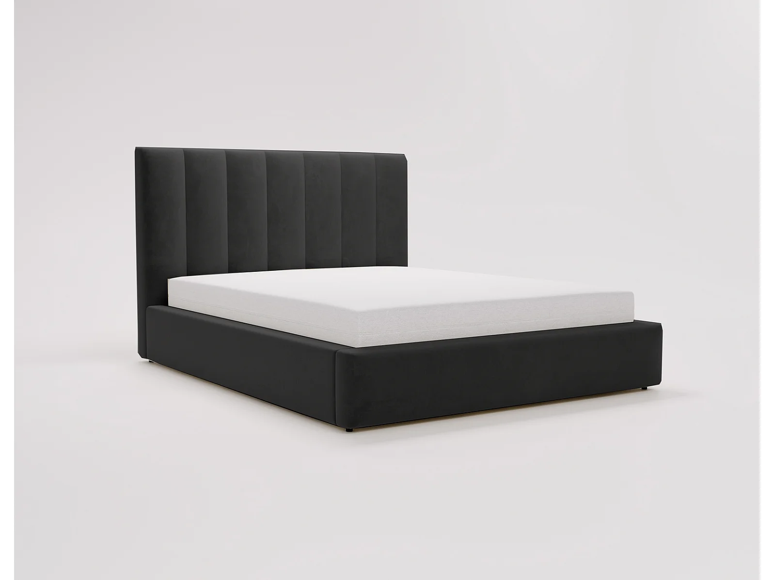 Emporius Velor Polsterbett 180x200 mit Bettkasten, Doppelbett, Kopfteil, Samtstoff, Bett Schwarz (Magic Velvet 2219)