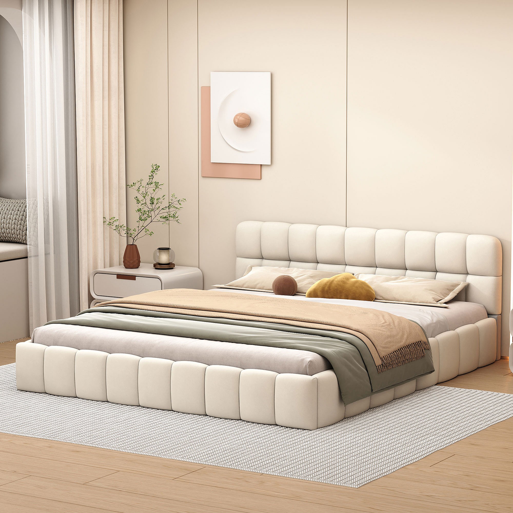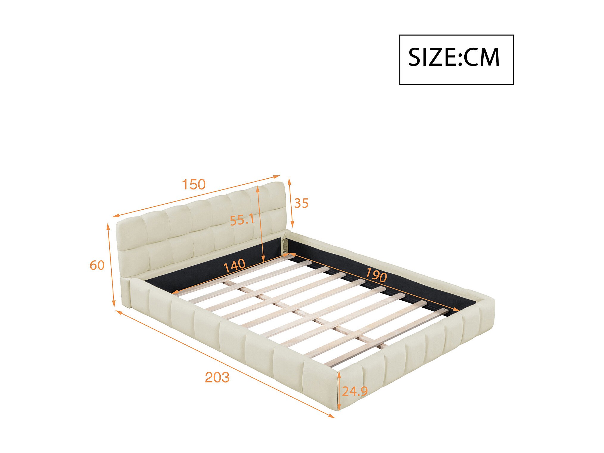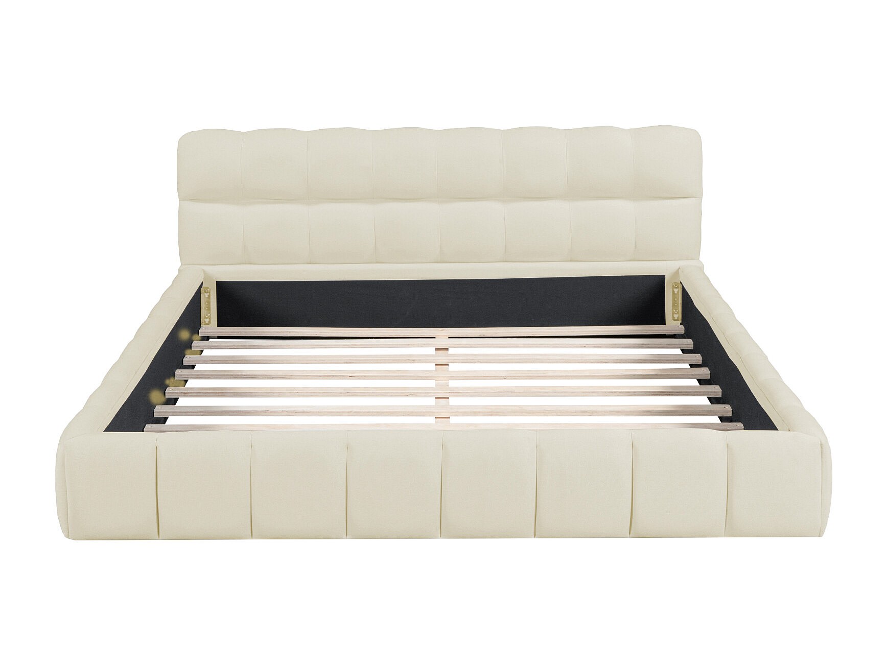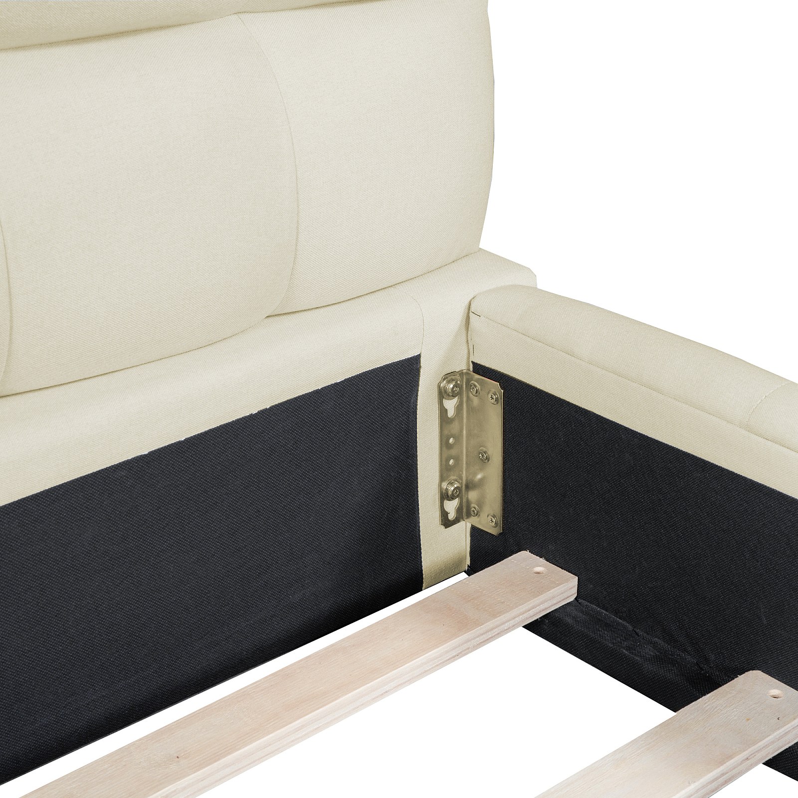 Erwachsenenbett 140x190cm aus Leinen mit weicher Rückenlehne, Flachbett mit Lattenrost, beige
