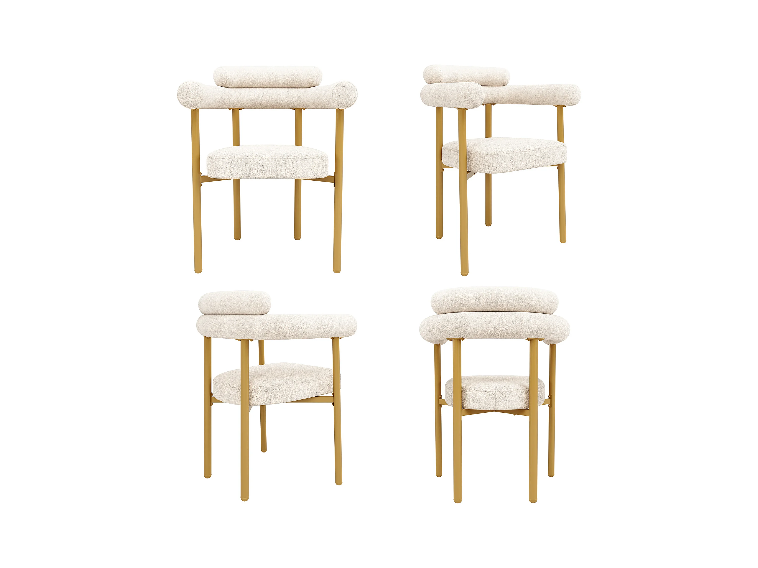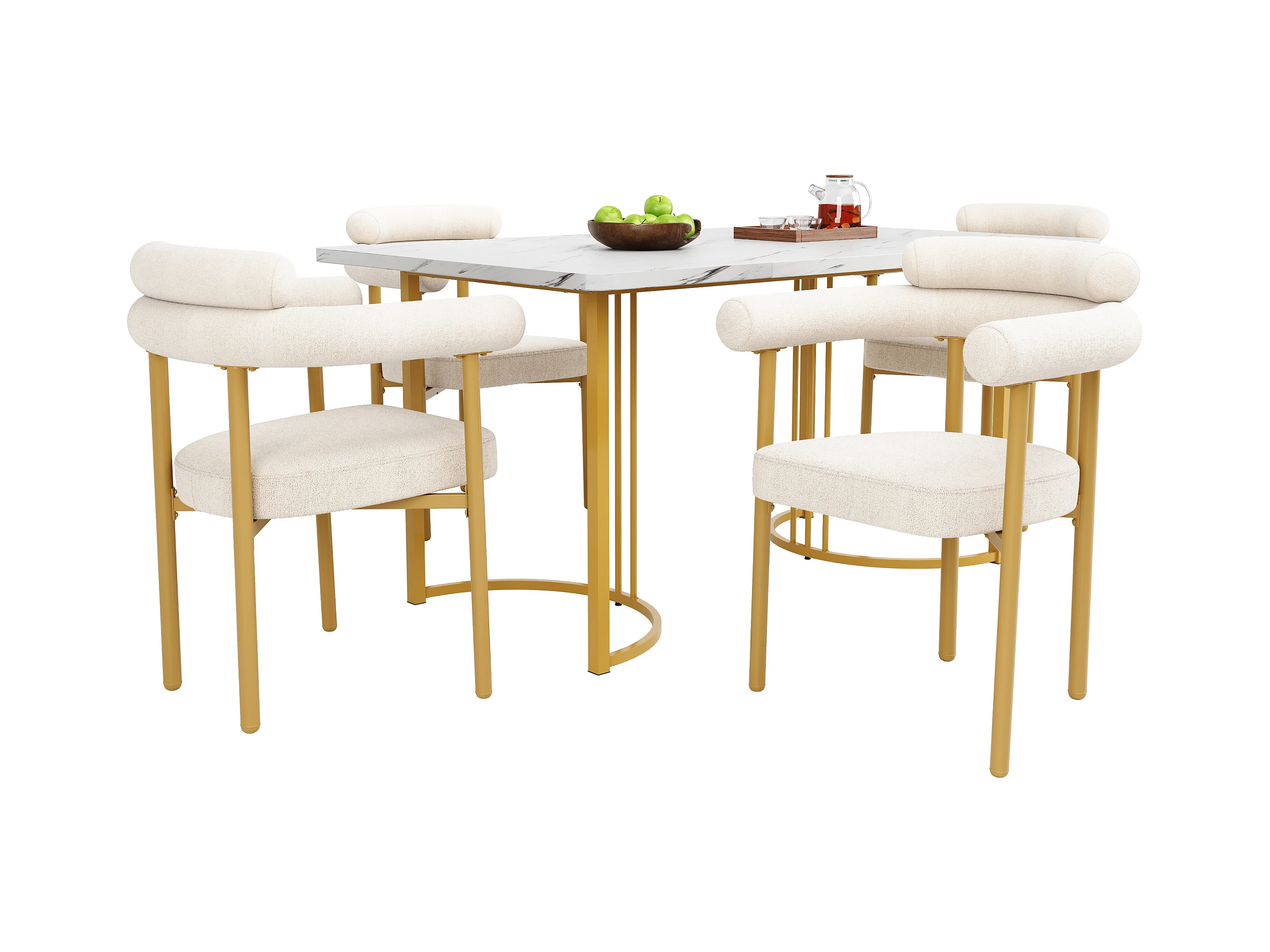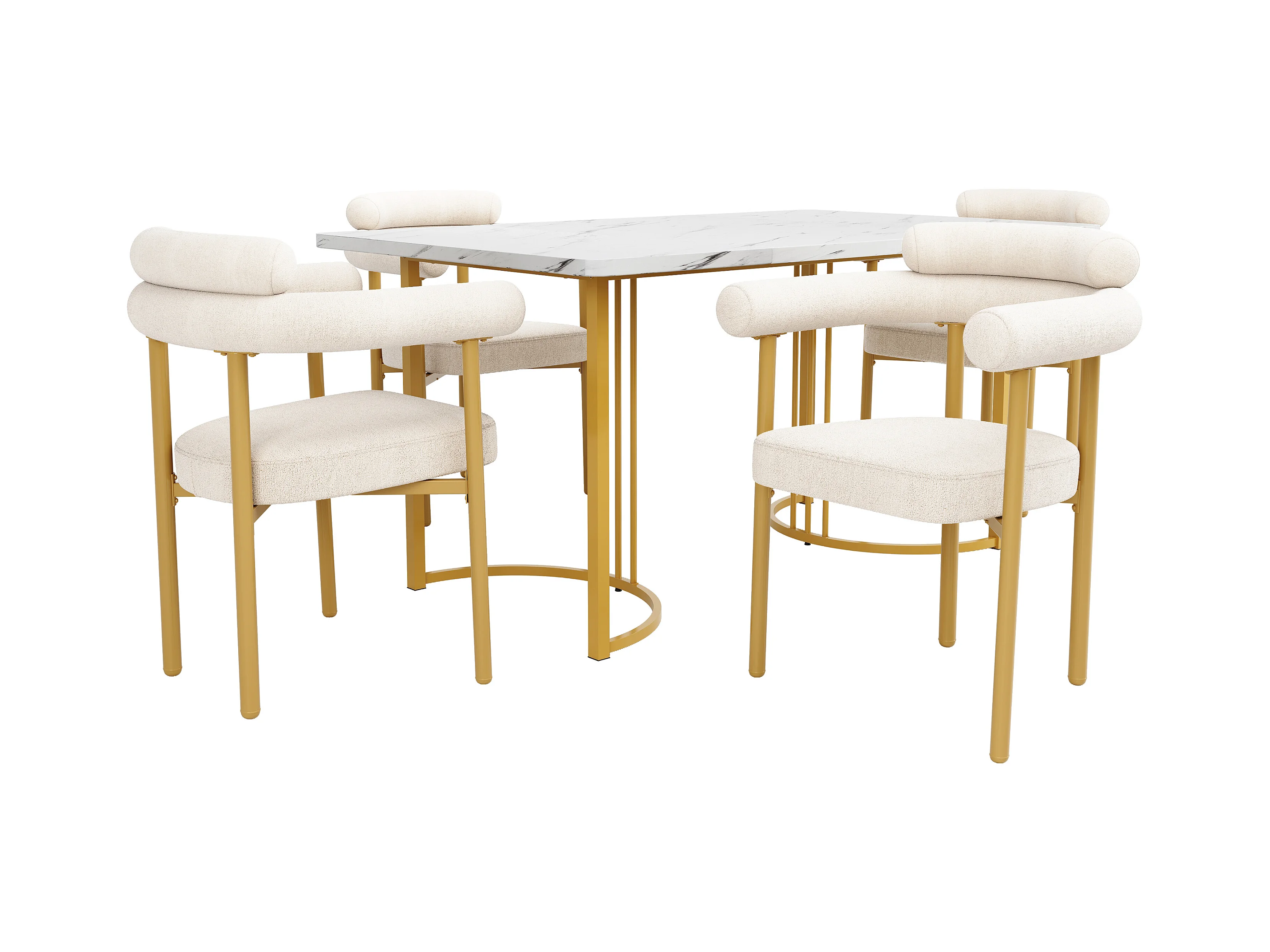 Esstisch-Set + 4 Samtstühle - 140 x 80 x 75 cm - MDF + goldene Metallbeine - Beige