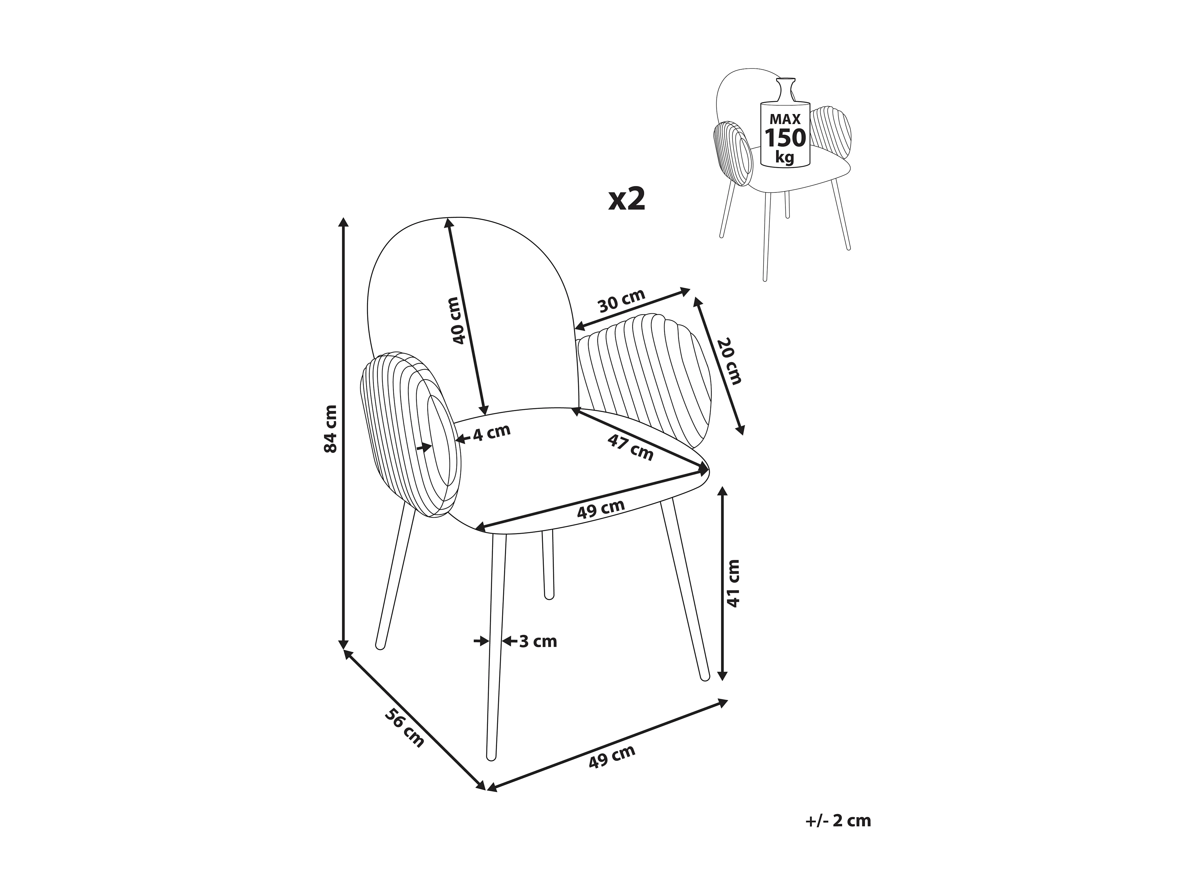Esszimmerstuhl 2er Set AMITY Stoff Taupe