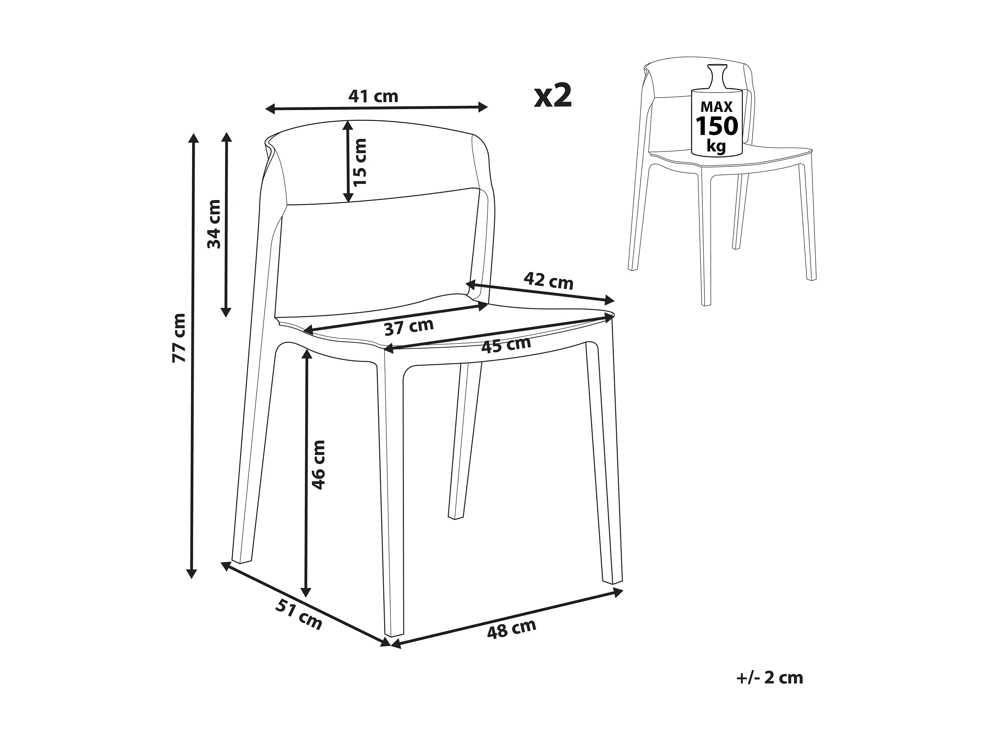 Esszimmerstuhl 2er Set Kunststoff beige stapelbar ohne Armlehnen modern Somers