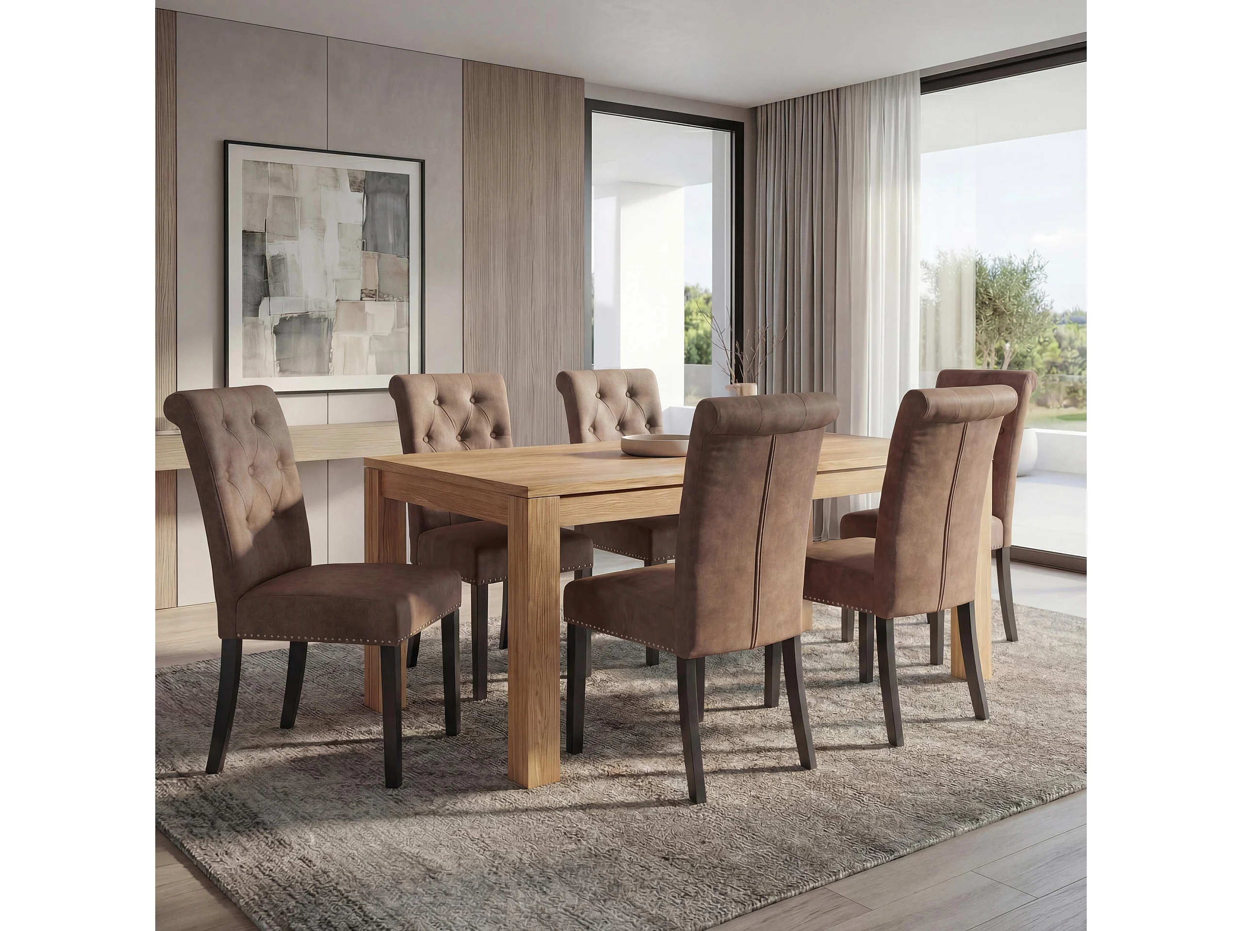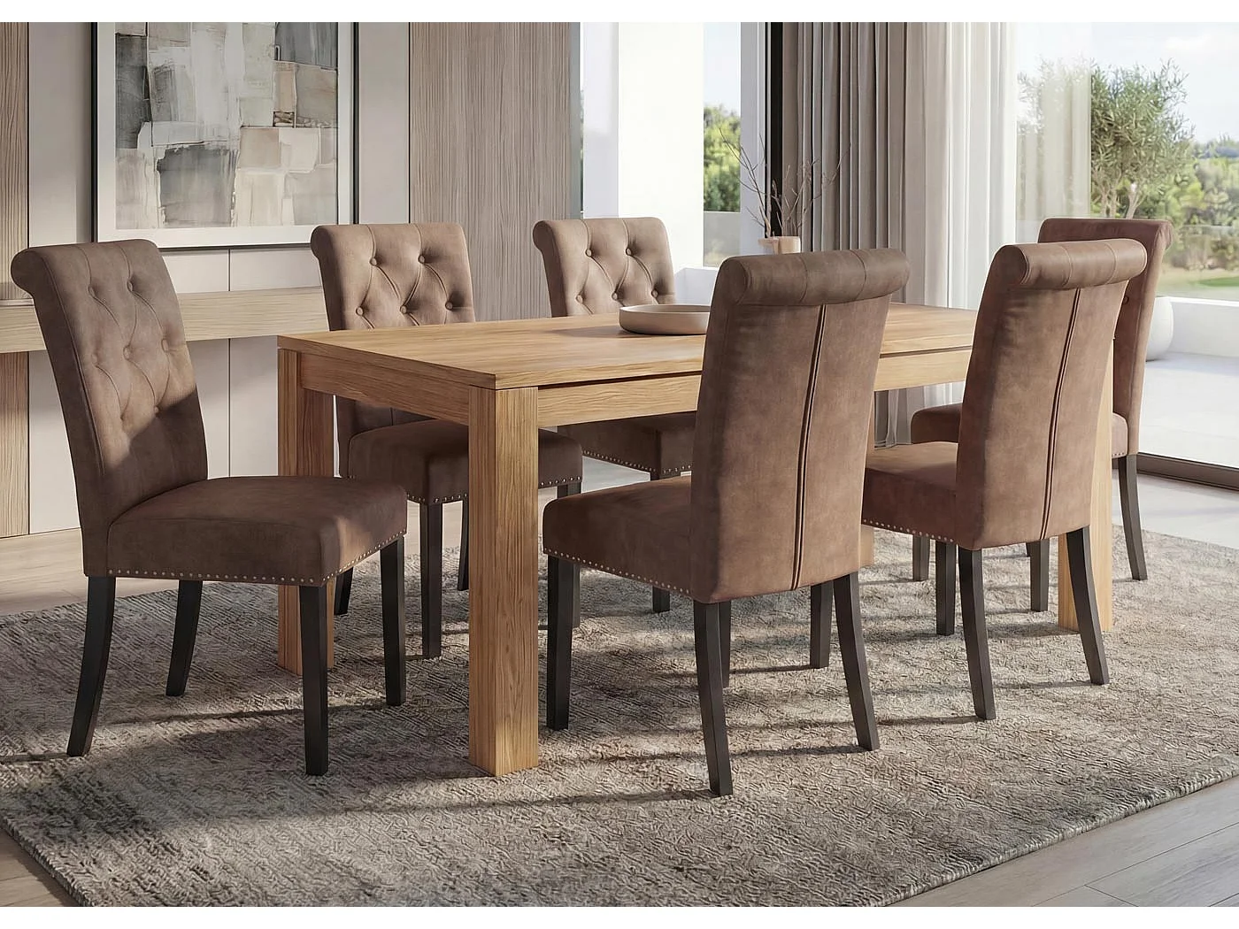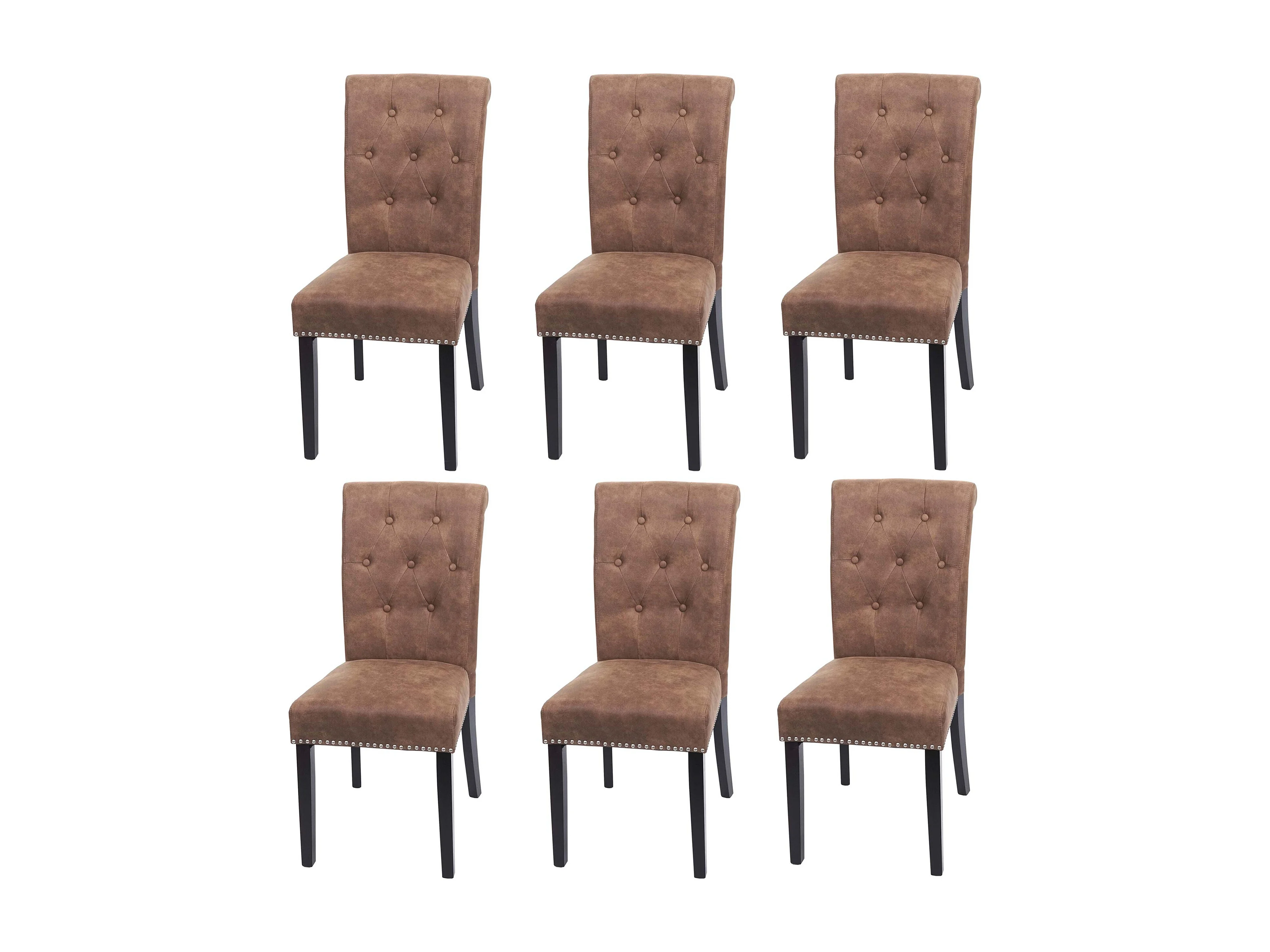 Esszimmerstuhl Chesterfield 2 (6er-Set), Stoff/Textil braun, dunkle Beine