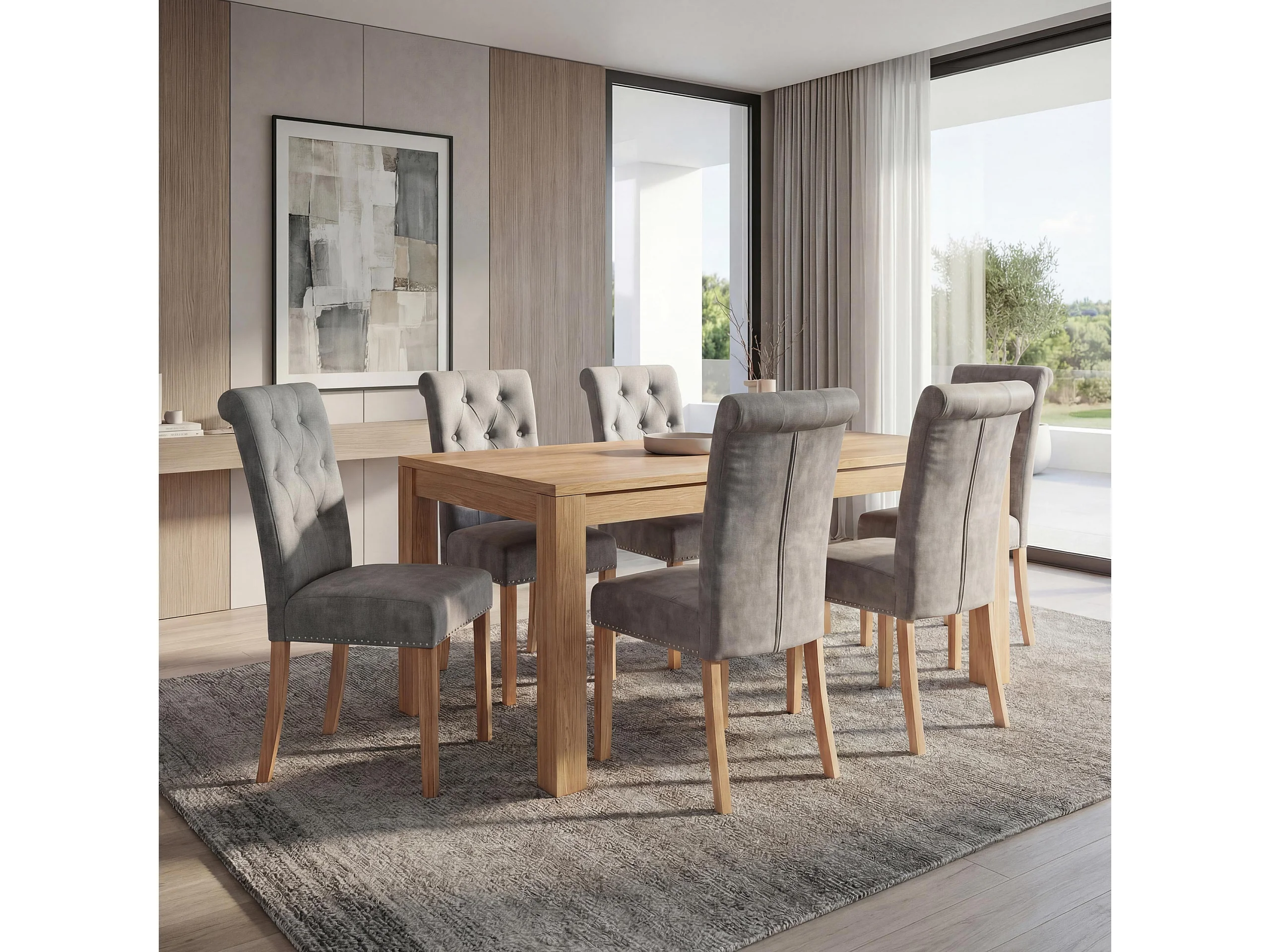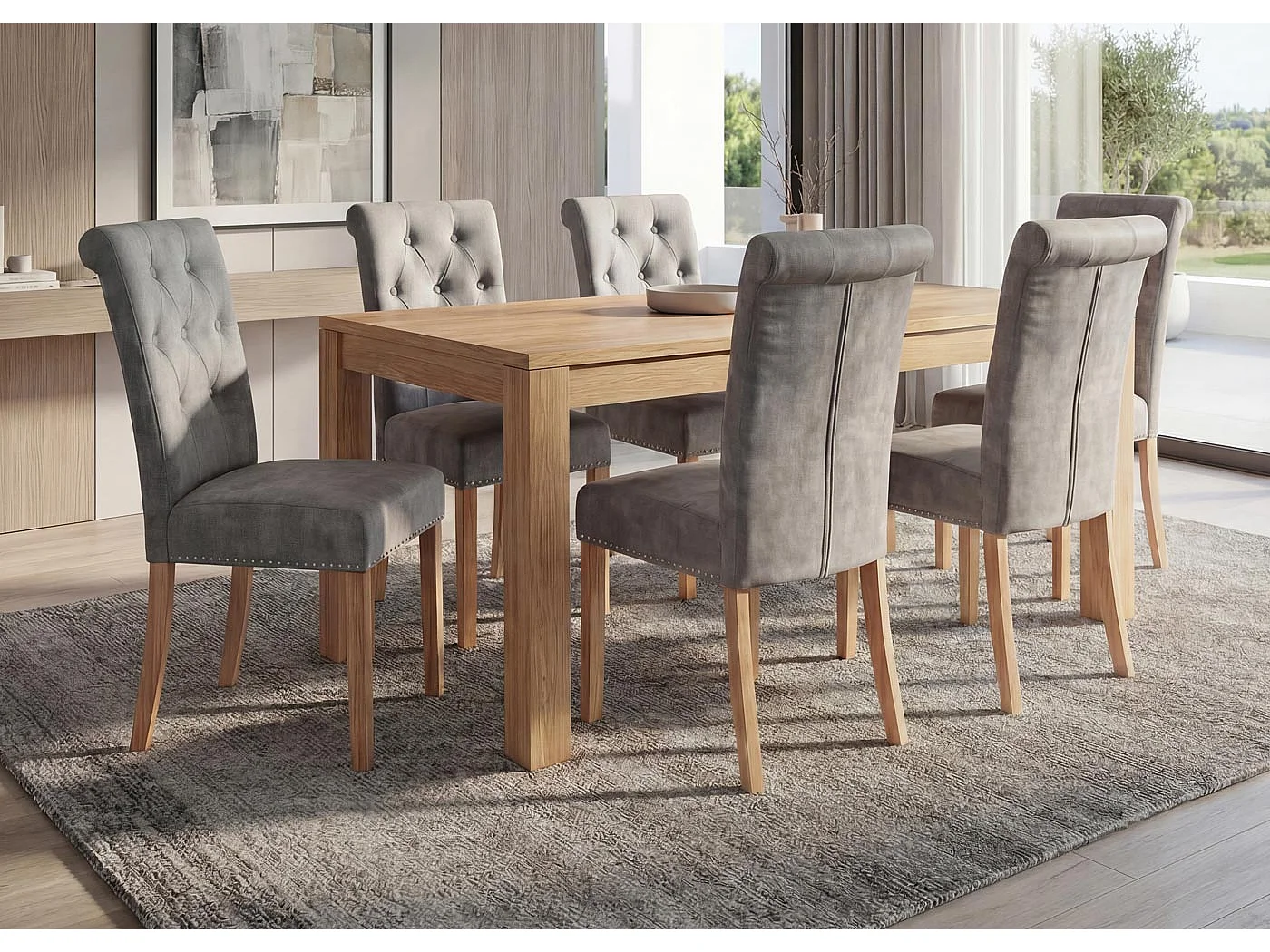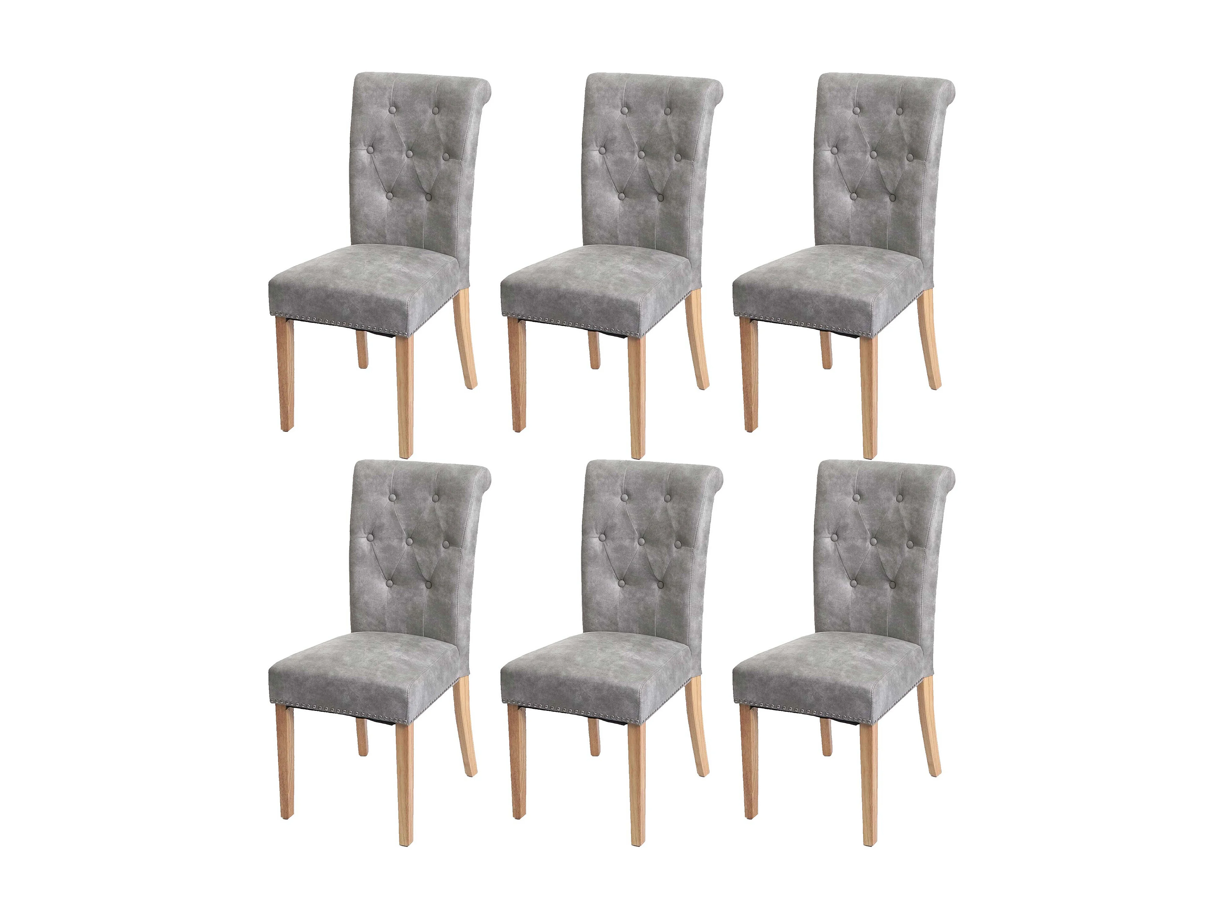 Esszimmerstuhl Chesterfield 2 (6er-Set), Stoff/Textil hellgrau, helle Beine
