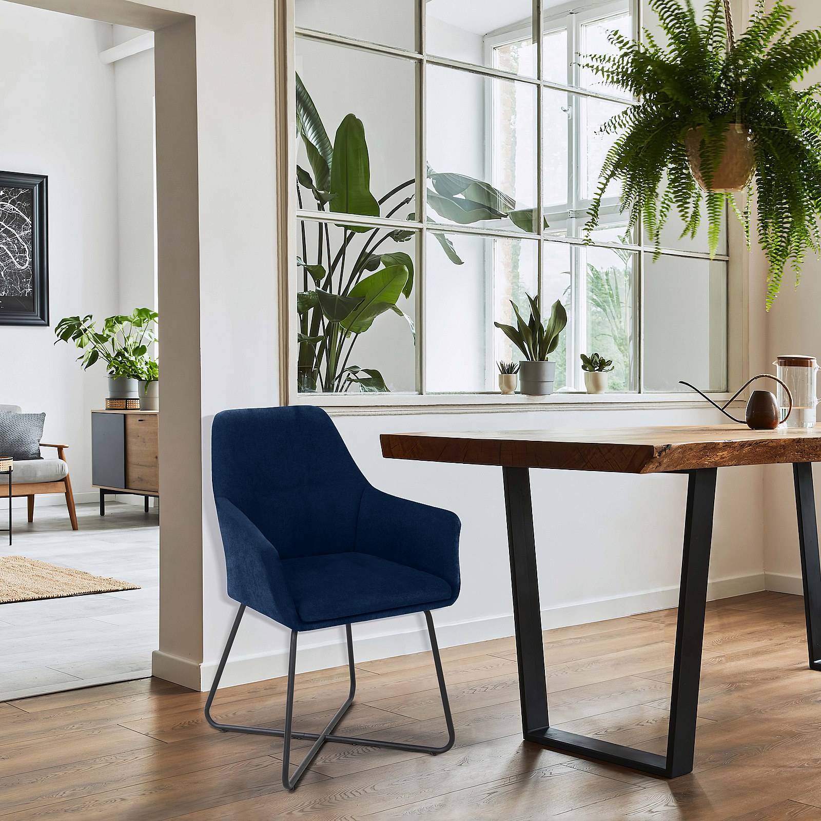 ESSZIMMERSTUHL JOSIE Dining 2er Set Samt Dunkelblau