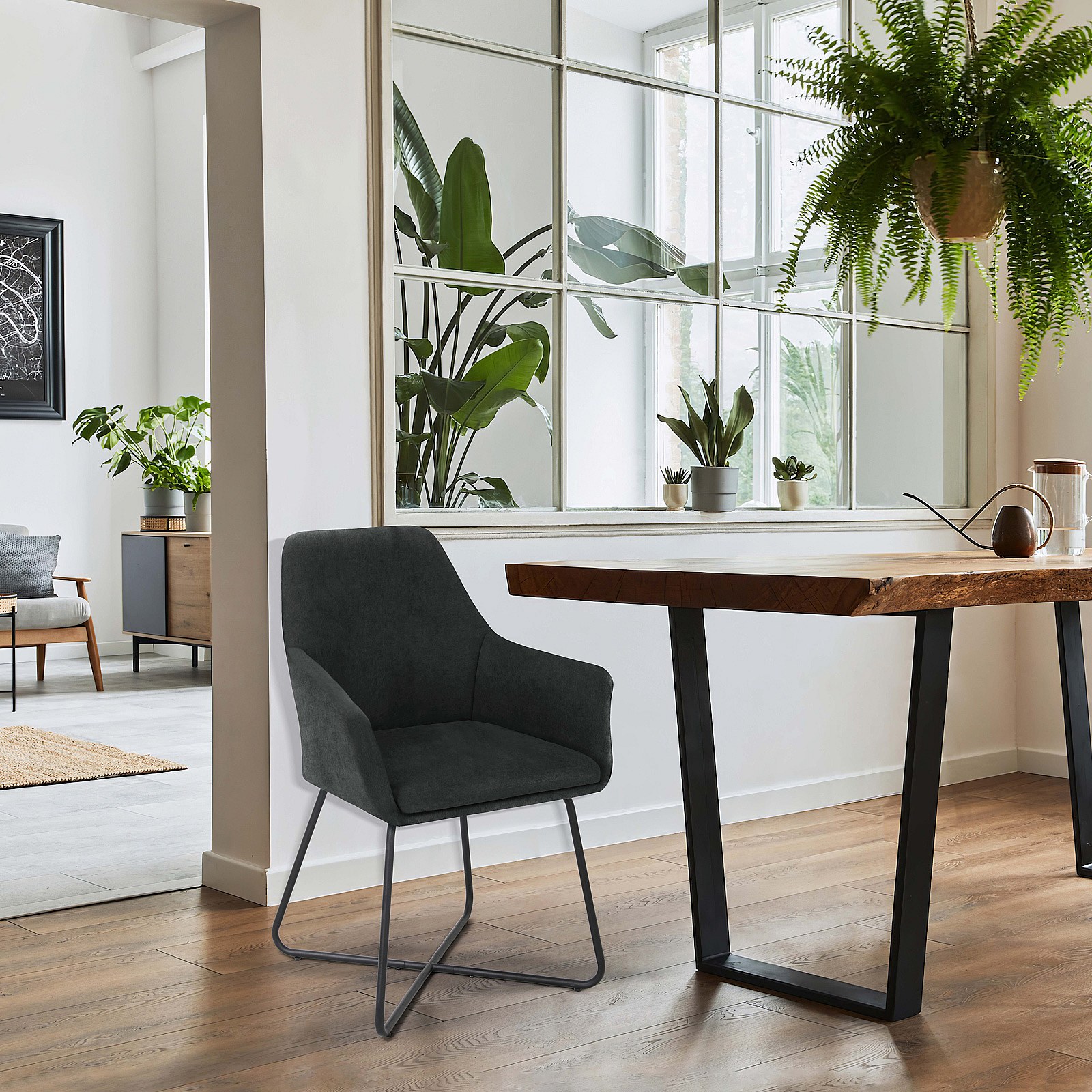 ESSZIMMERSTUHL JOSIE Dining 2er Set Stoffbezug Dunkelgrau