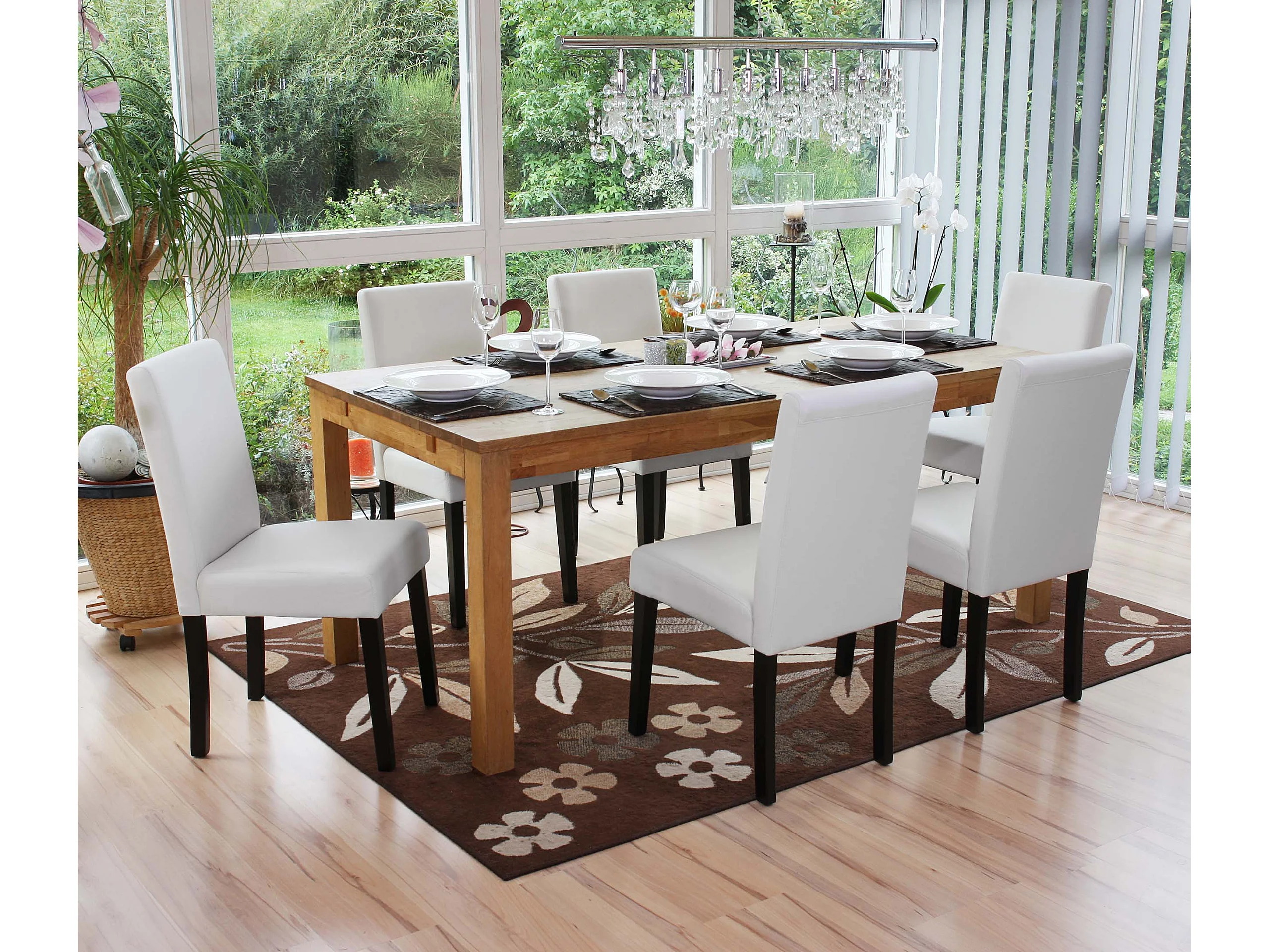 Esszimmerstuhl Littau Kunstleder 6er-Set, Kunstleder, weiß matt, dunkle Beine