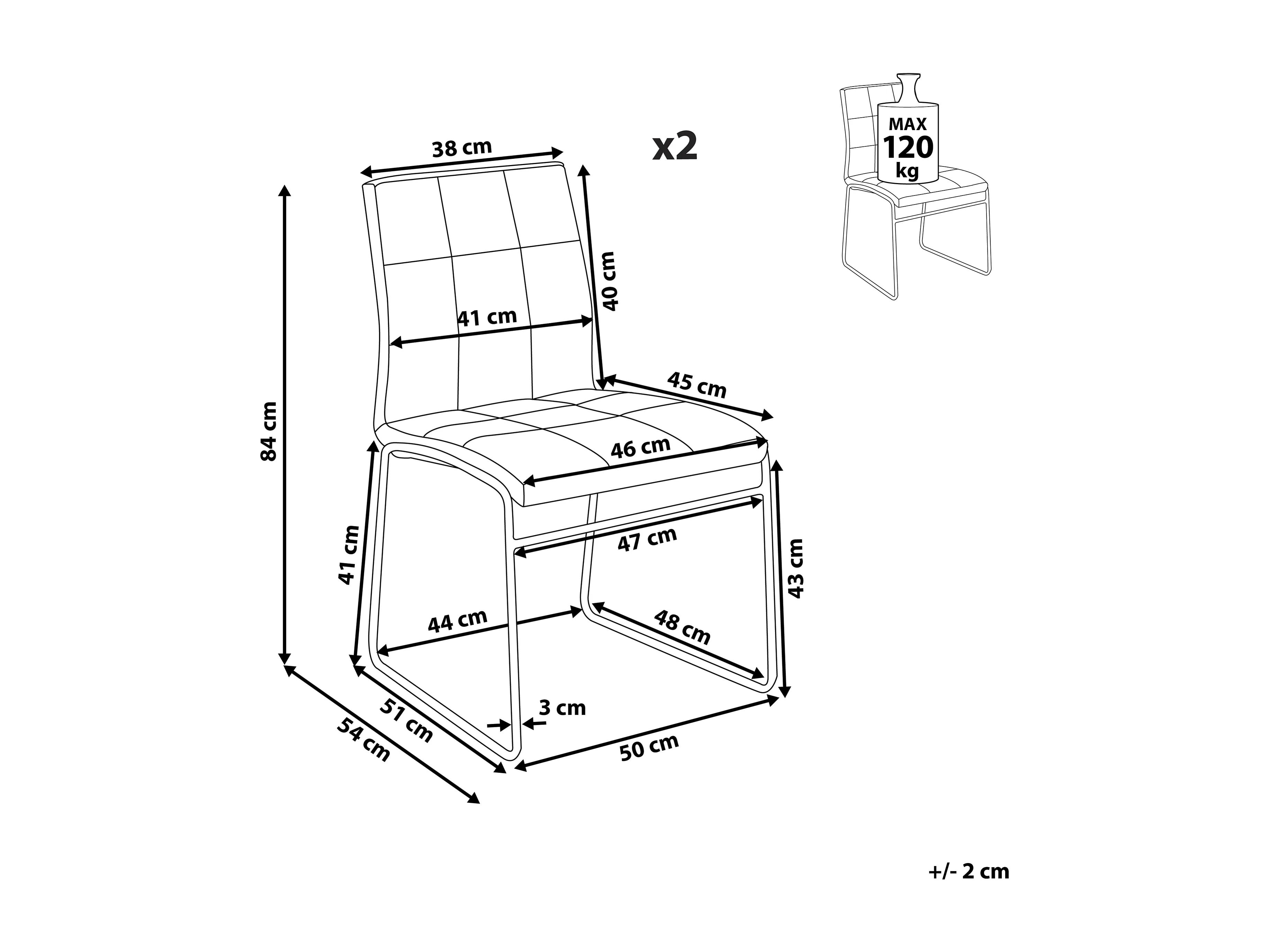 Esszimmerstuhl 2er Set in Schwarz Bezug aus Kunstleder Metallbeine Kiron