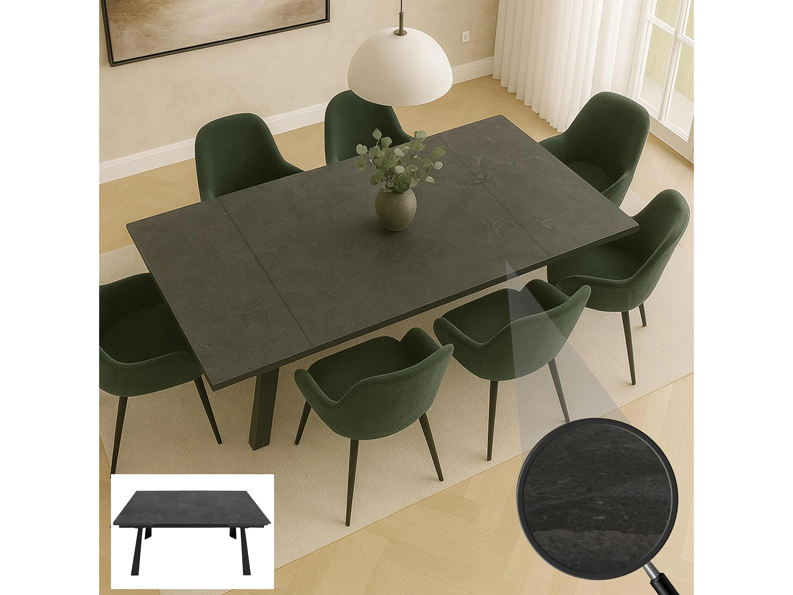 Karamay Premium Cashmere Ausziehtisch 160/420x90 cm mit anthrazitfarbenen Beinen