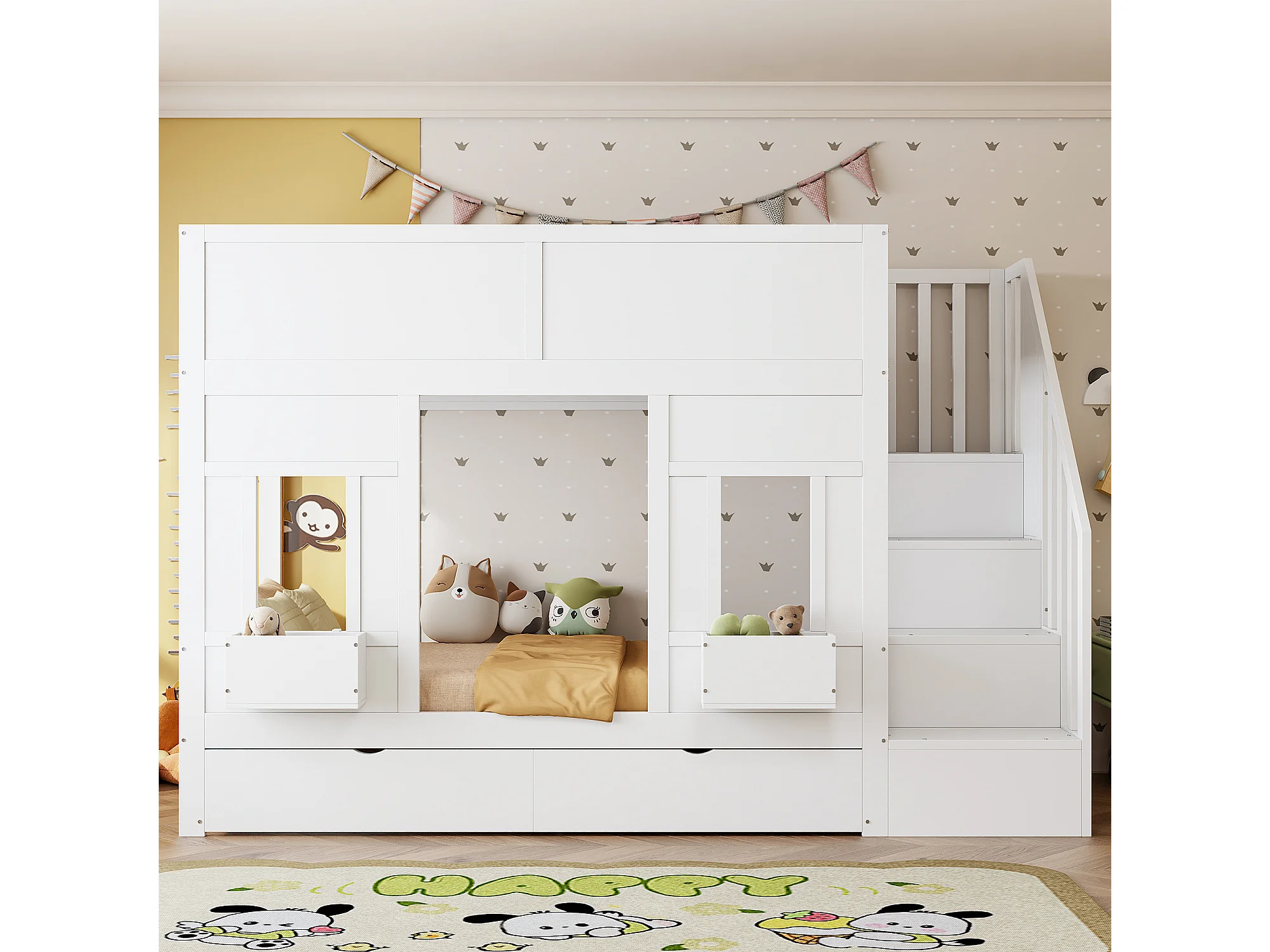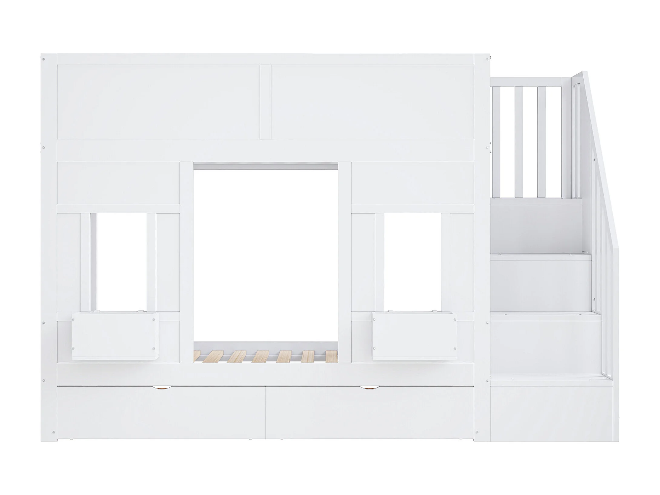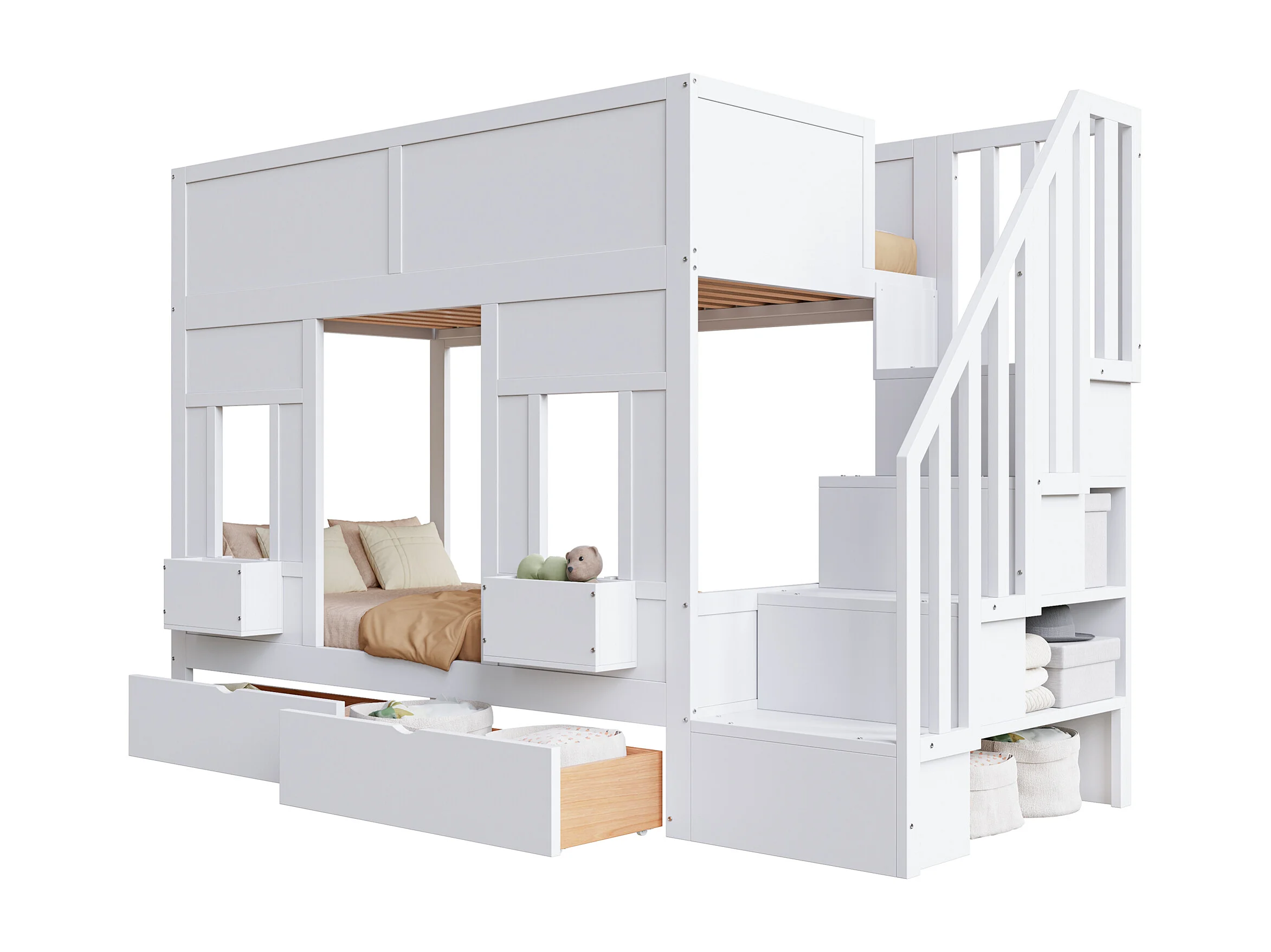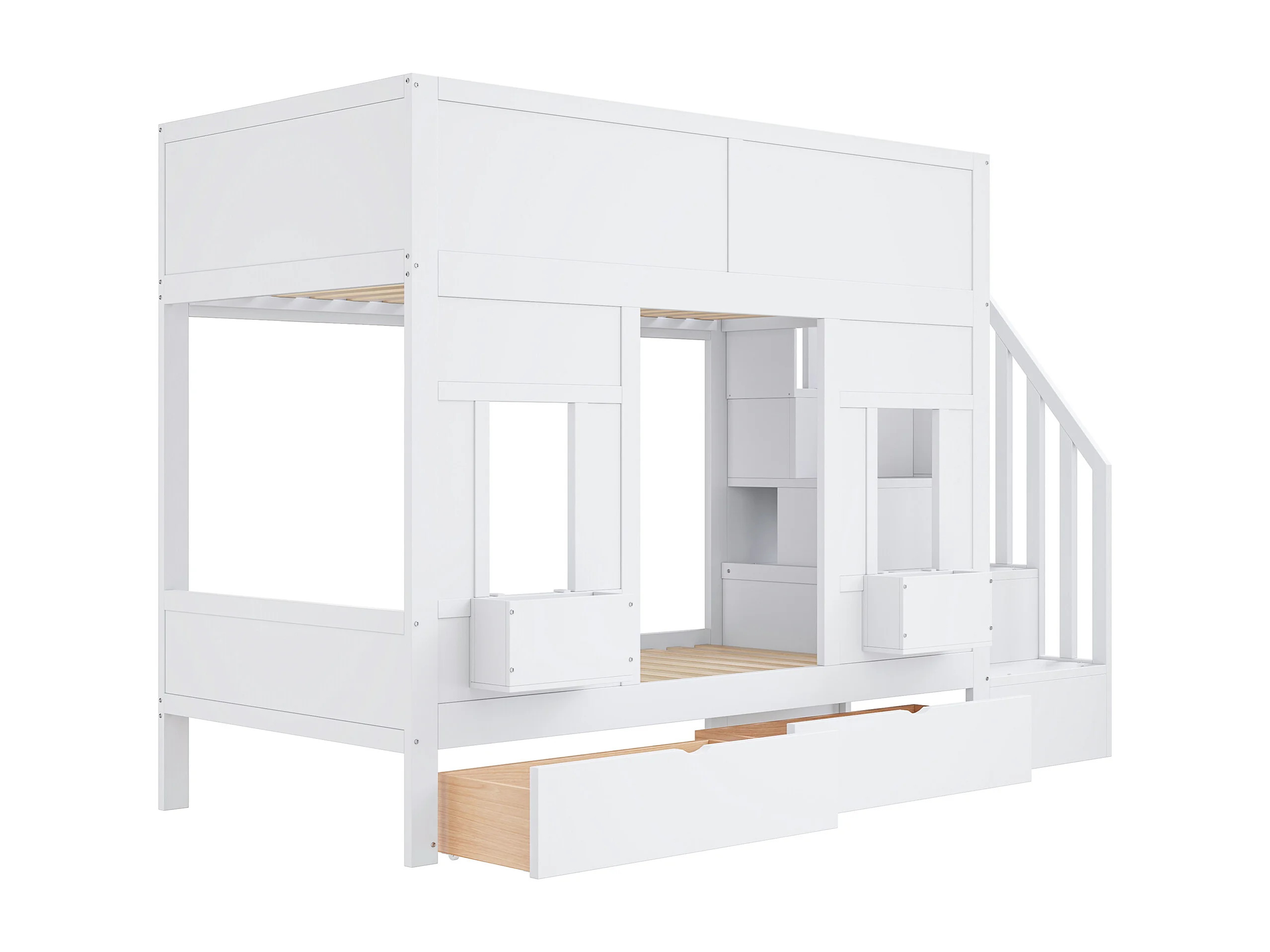 Etagenbett für Kinder 90 x 200 cm - mit Aufstiegsleiter mit Stauraum - mit 2 Schubladen - mit Sicherheitsgittern - weiß​ (Matratze nicht inbegriffen)