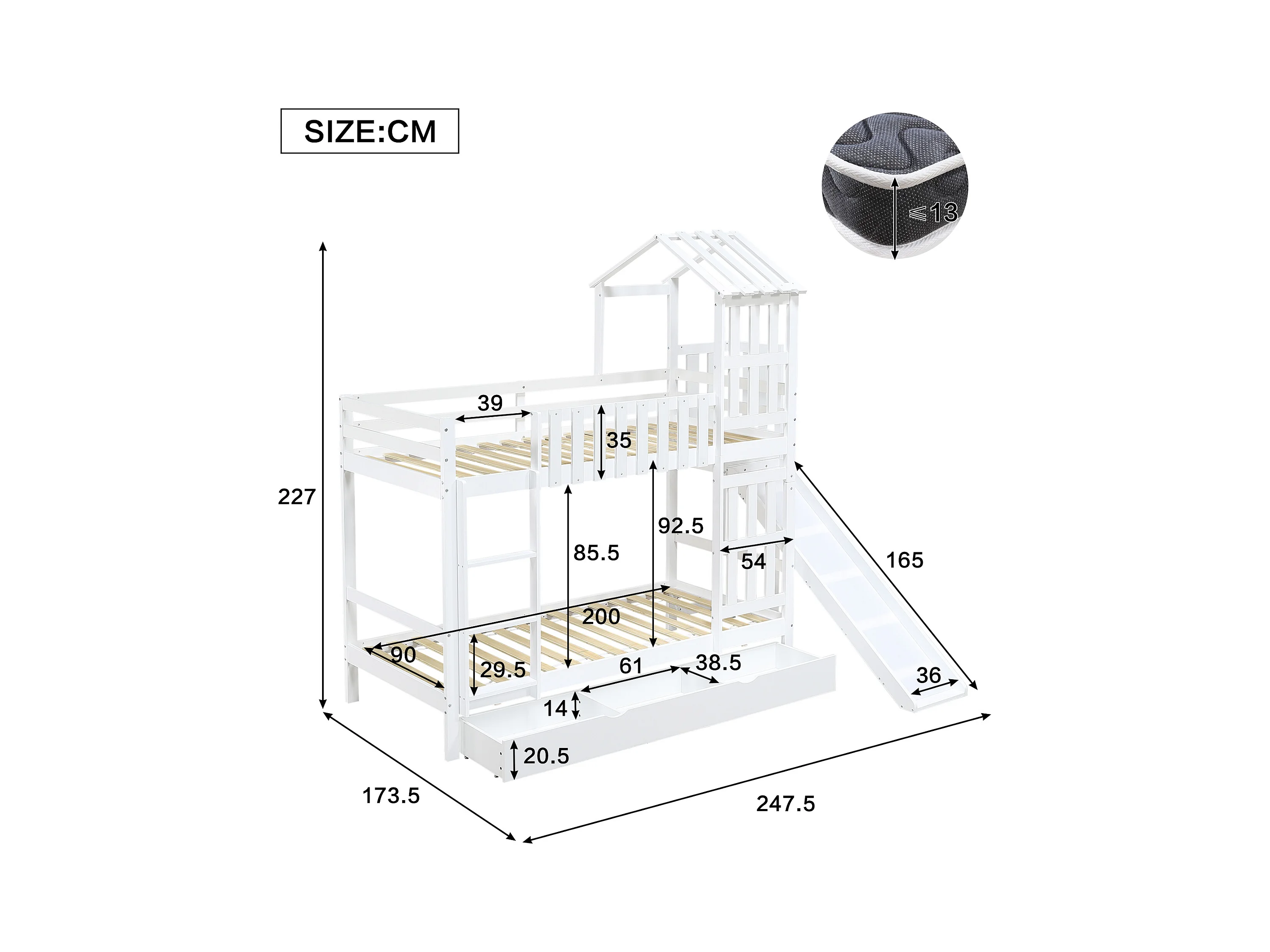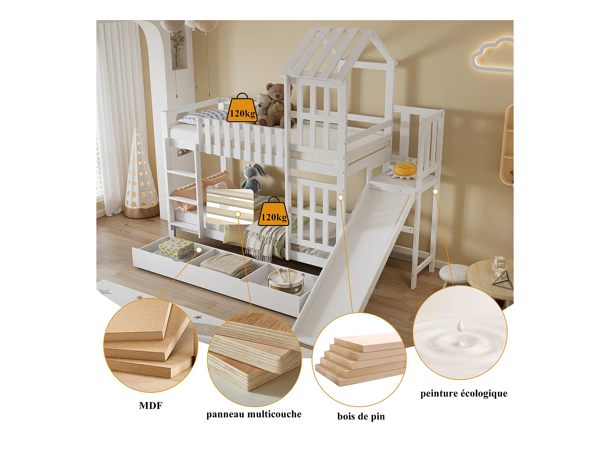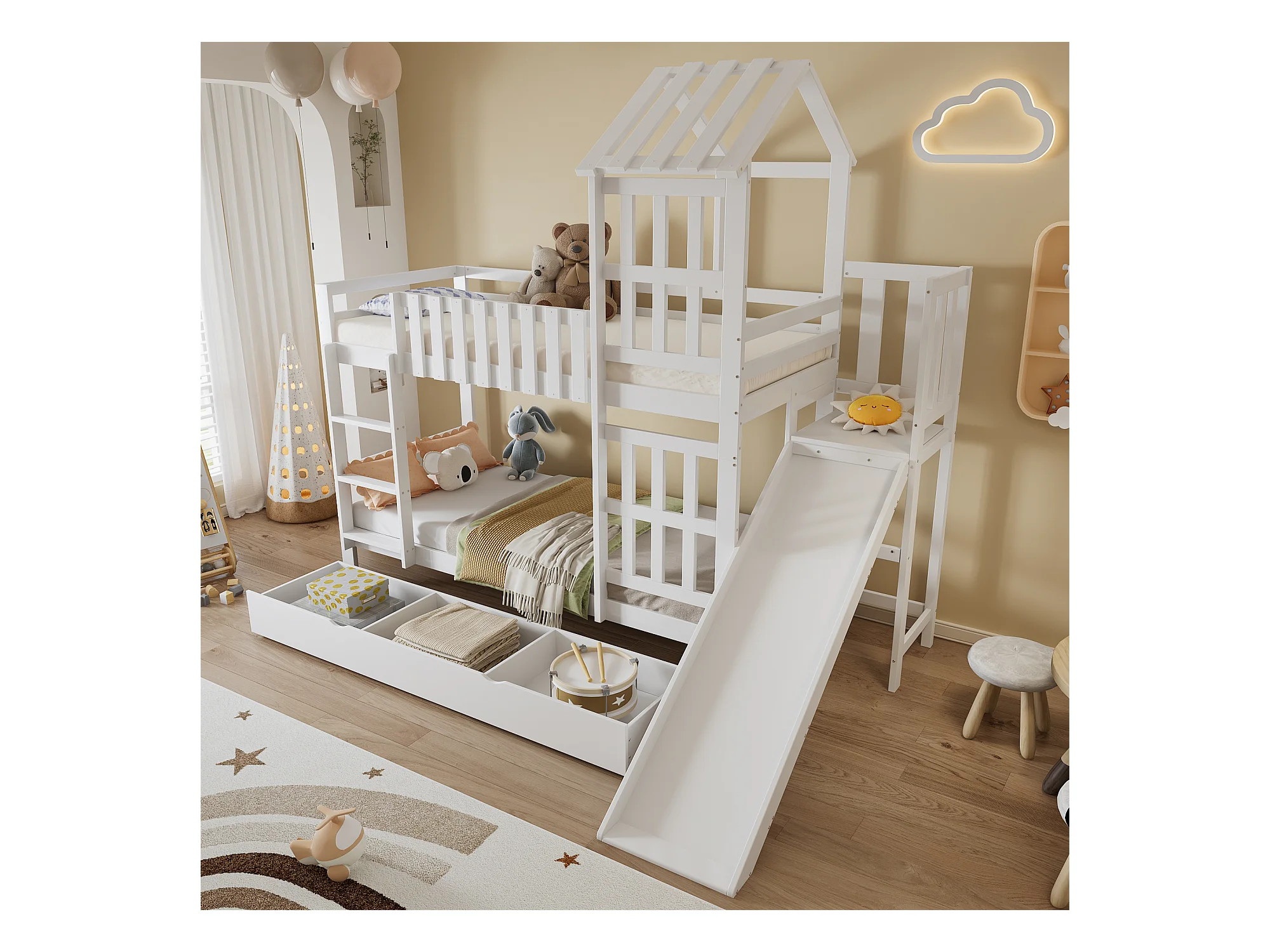 Etagenbett, Kinderbett, Große Schublade Mit Rollen, Spaßrutsche für Kinder