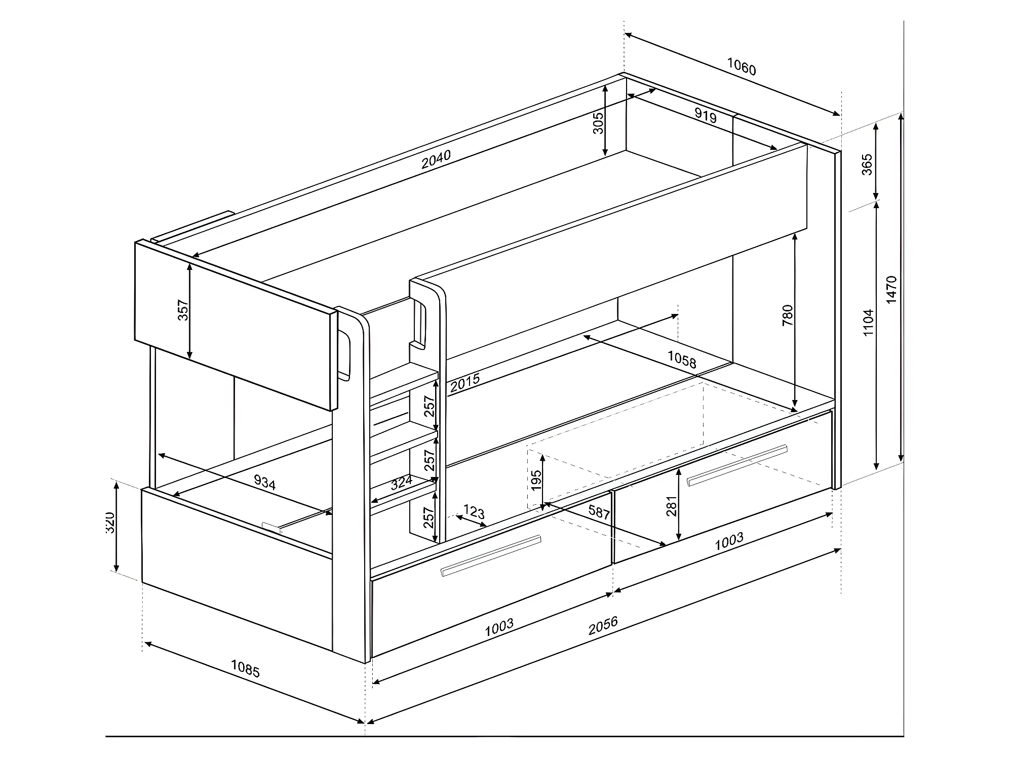Etagenbett mit 2 Schubladen - 2x 90 x 200 cm - Naturfarben & Weiß - TINOLI