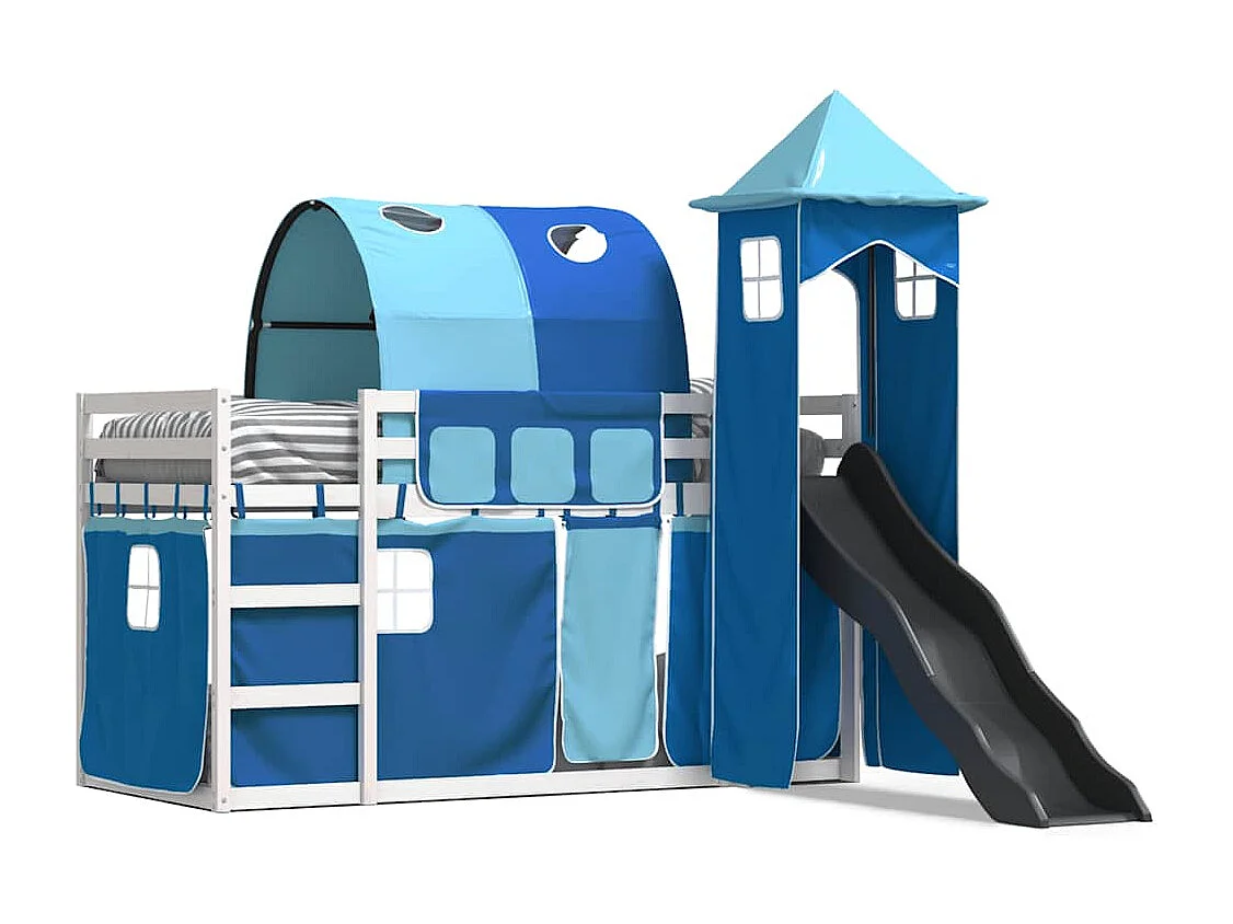Etagenbett mit Rutsche und Gardinen Blau 90x190 cm
