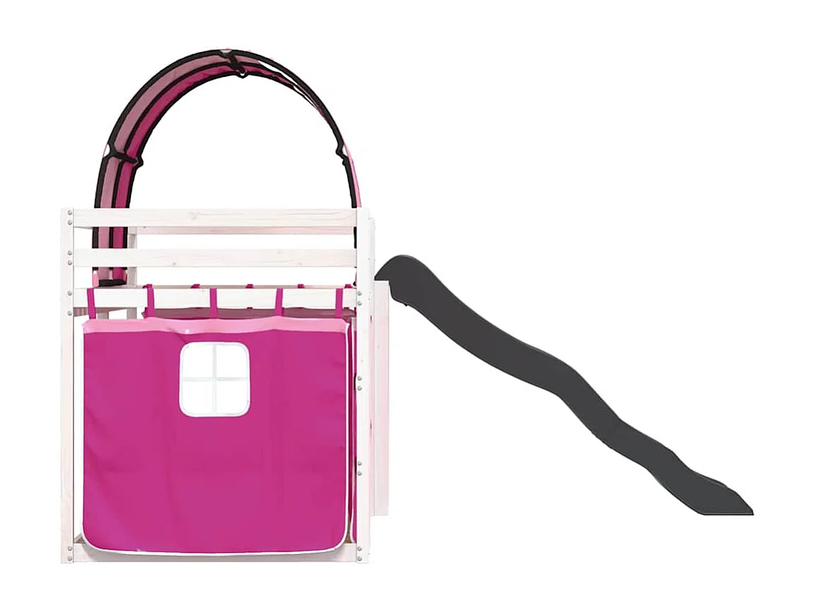 Etagenbett mit Rutsche und Gardinen Rosa 80x200 cm