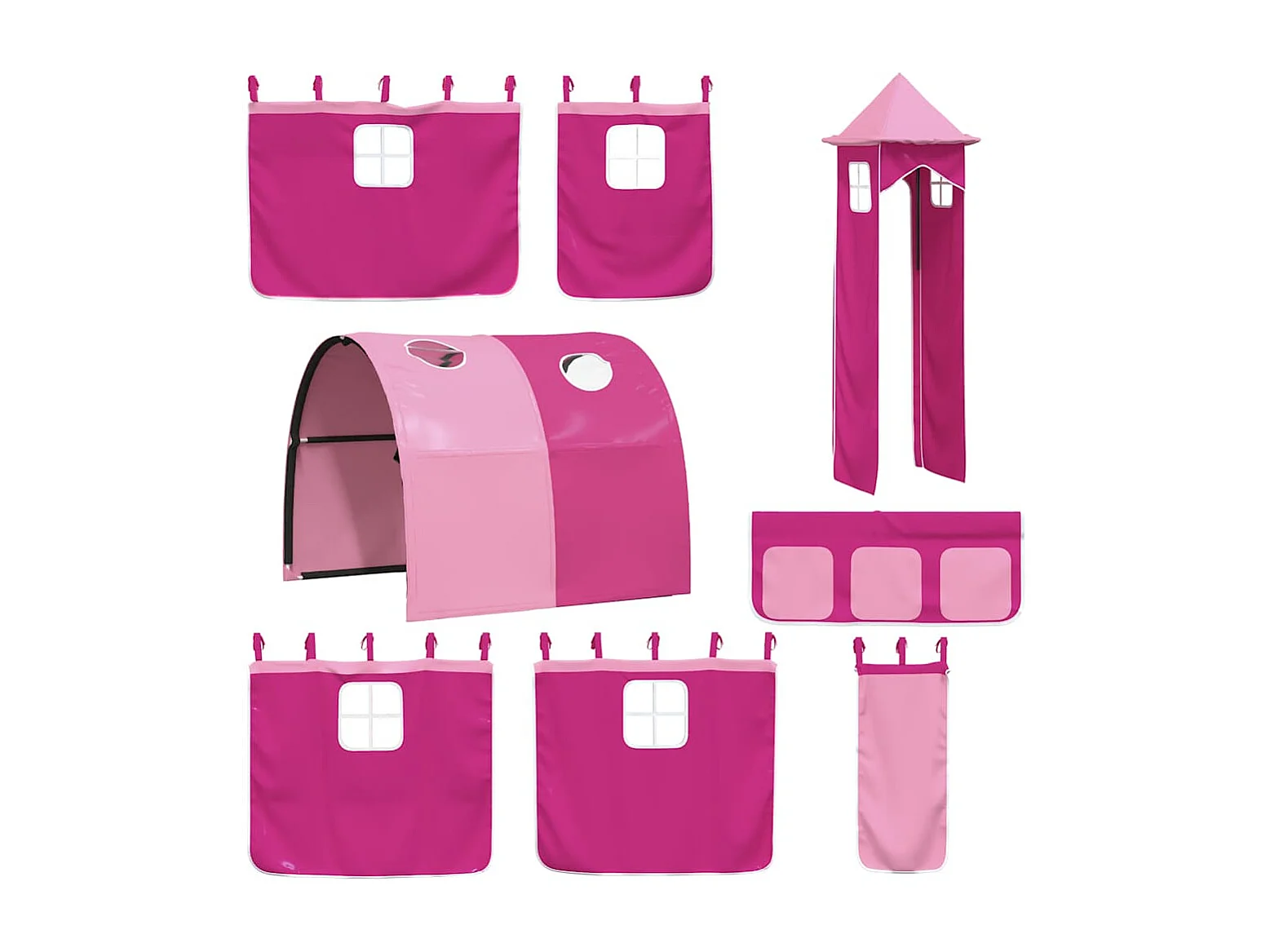 Etagenbett mit Rutsche und Gardinen Rosa 90x200 cm