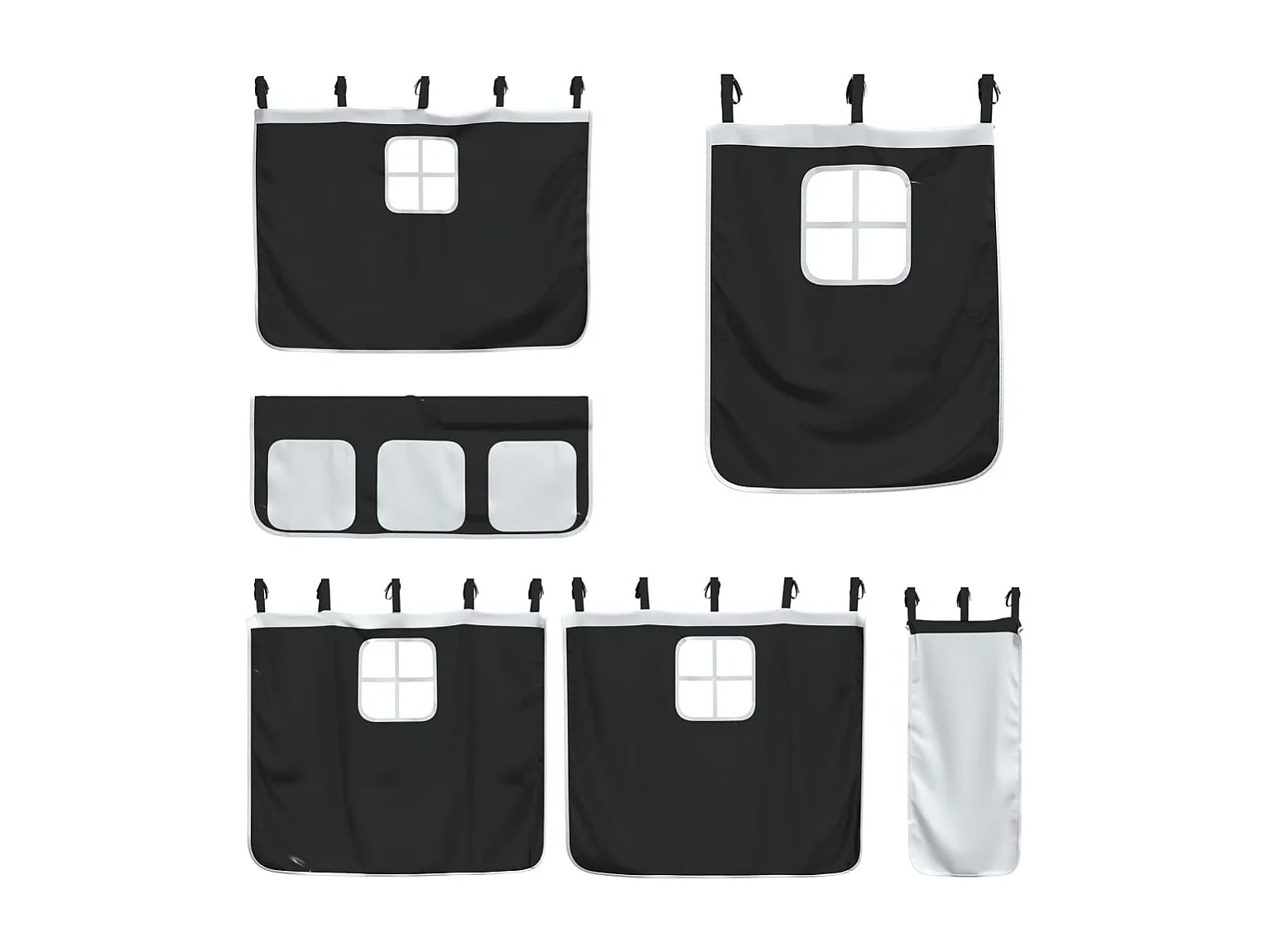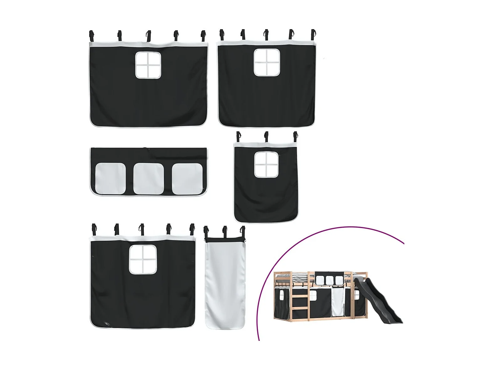 Etagenbett mit Rutsche und Gardinen Weiß und Schwarz 80x200 cm