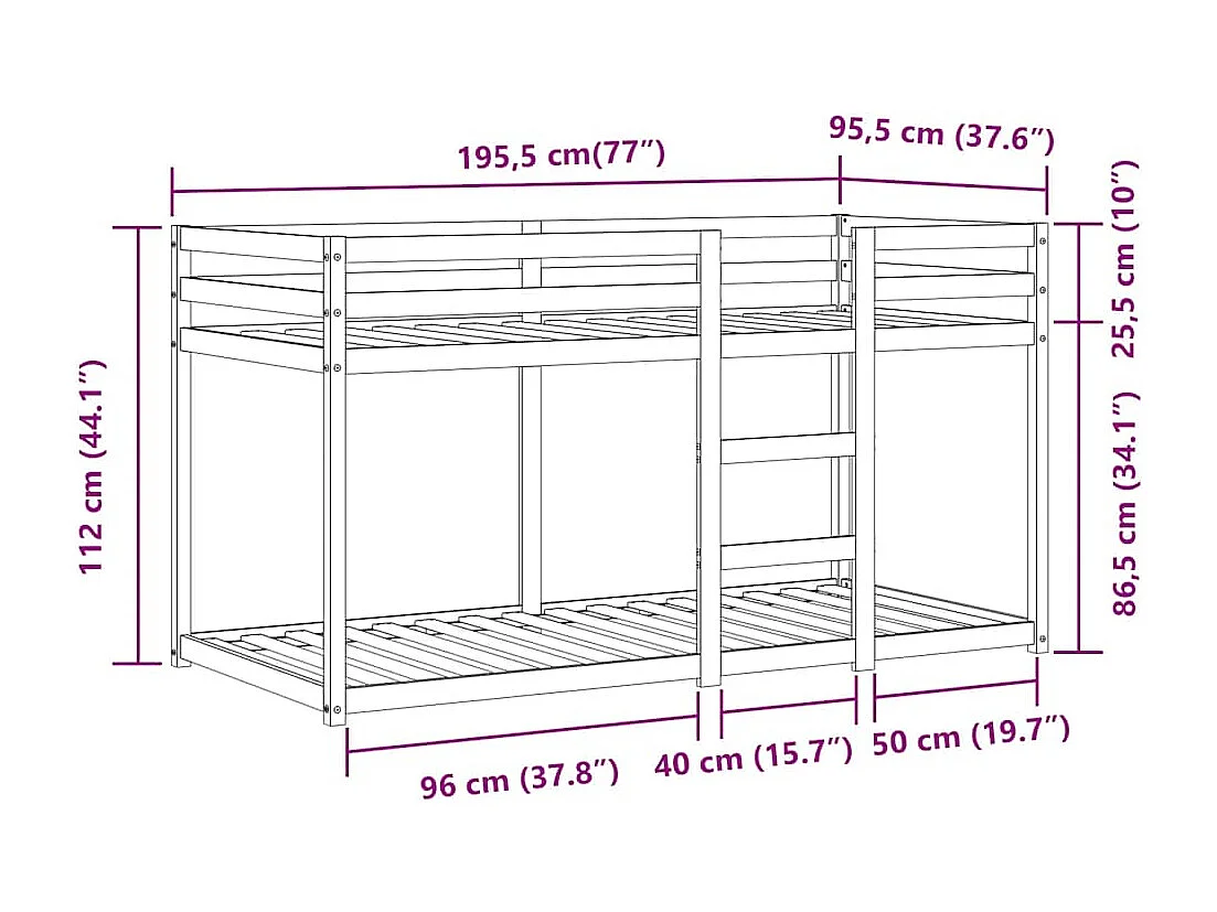 Etagenbett mit Vorhängen Blau 90x190 cm Massivholz Kiefer