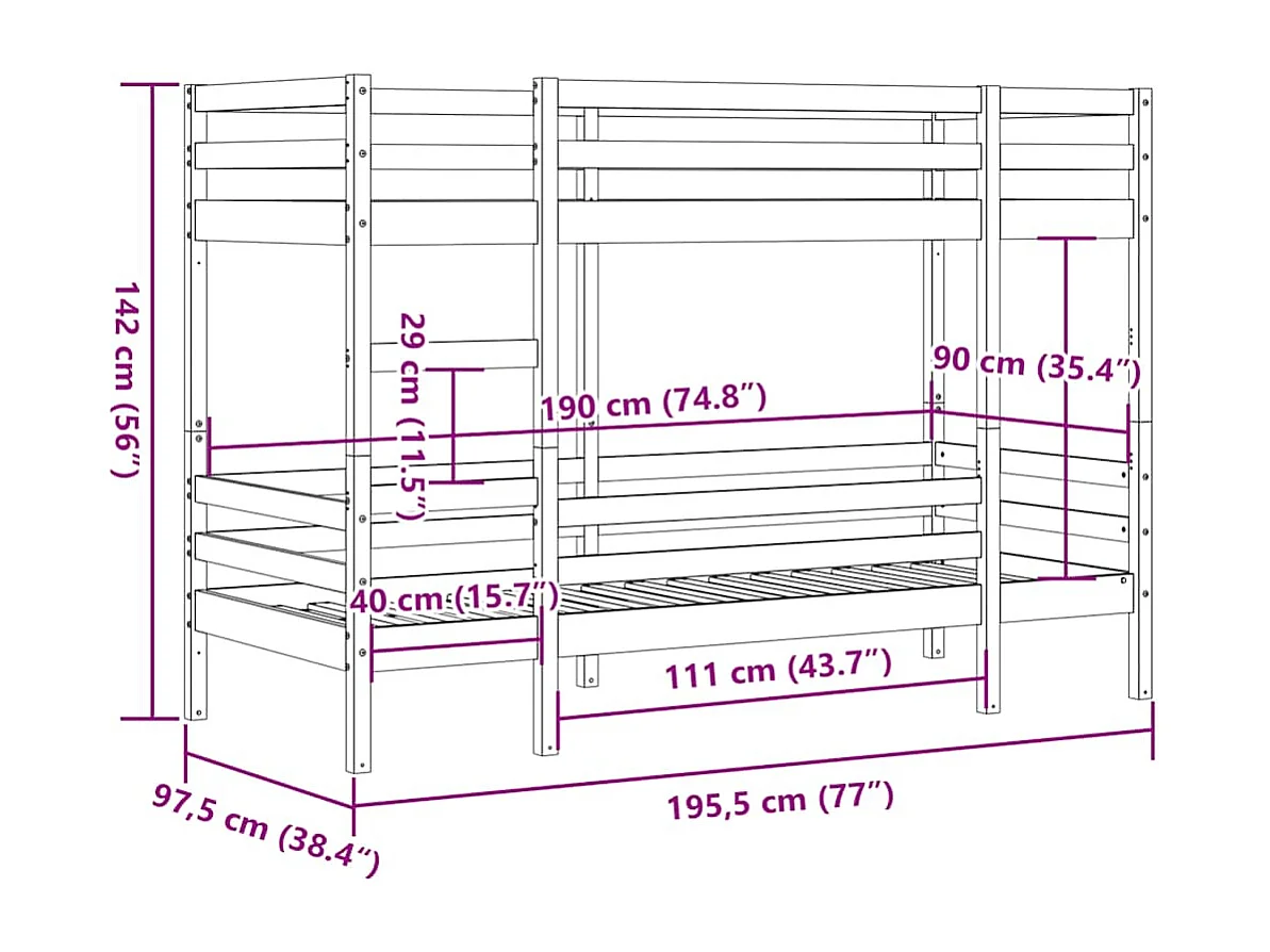 Etagenbett ohne Matratze 90x190 cm Massivholz Kiefer