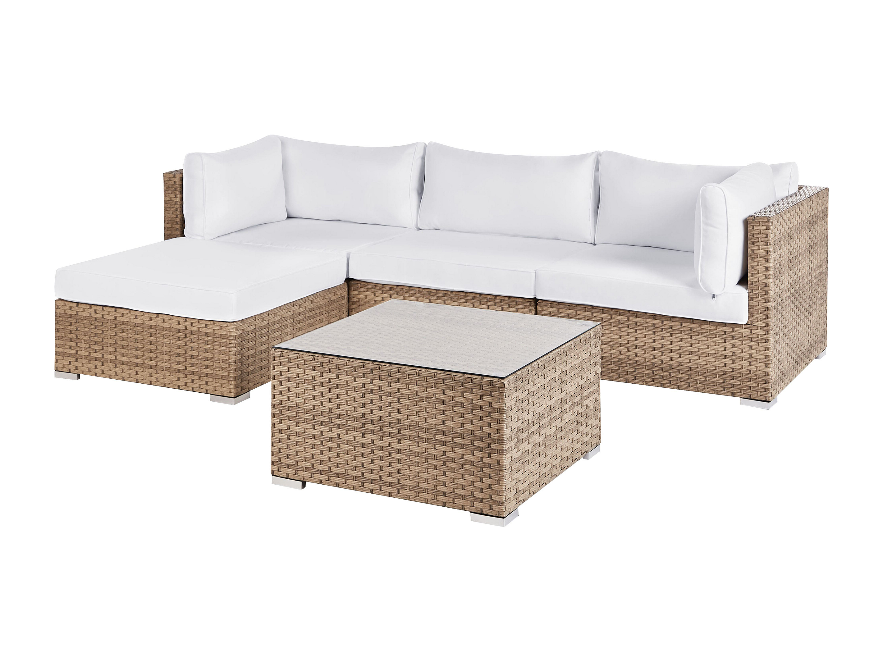 Exklusives Gartenmöbel 4er Set Rattan naturfarben / weiß rechtsseitig Sano II