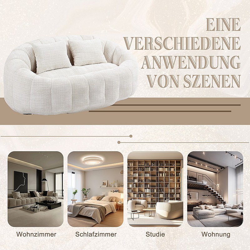Faulenzer Sessel aus Chenille - 2-sitzer - mit 2 Kissen - 62cm Sitztiefe - Max. Belastung 250kg - Beige