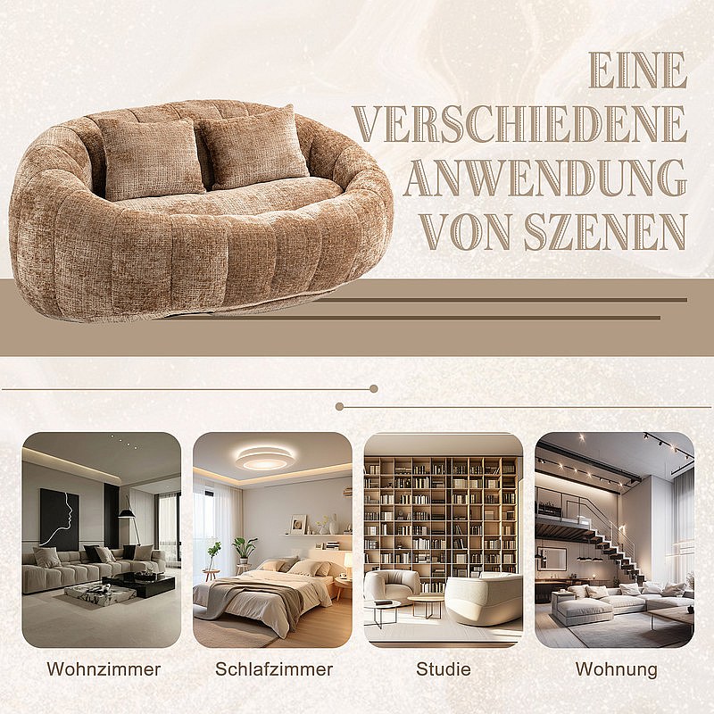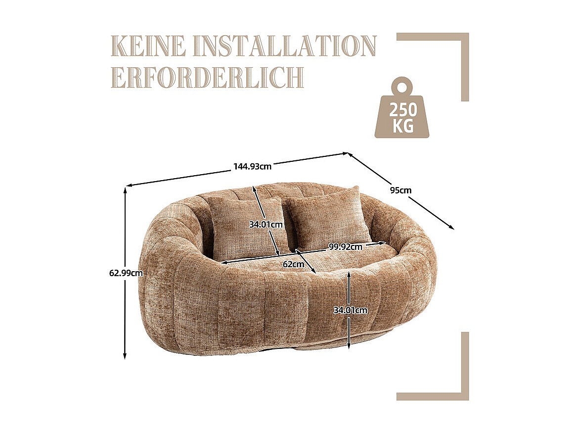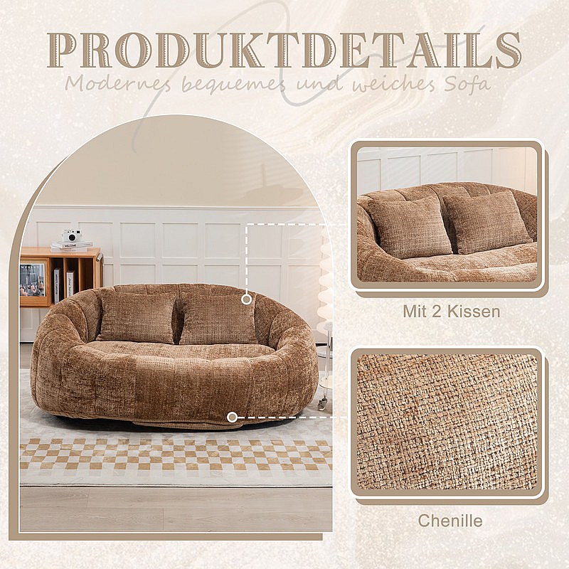 Faulenzer Sessel aus Chenille - 2-sitzer - mit 2 Kissen - 62cm Sitztiefe - Max. Belastung 250kg - Braun