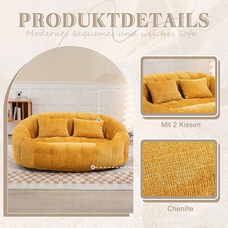 Faulenzer Sessel aus Chenille - 2-sitzer - mit 2 Kissen - 62cm Sitztiefe - Max. Belastung 250kg - Gelb