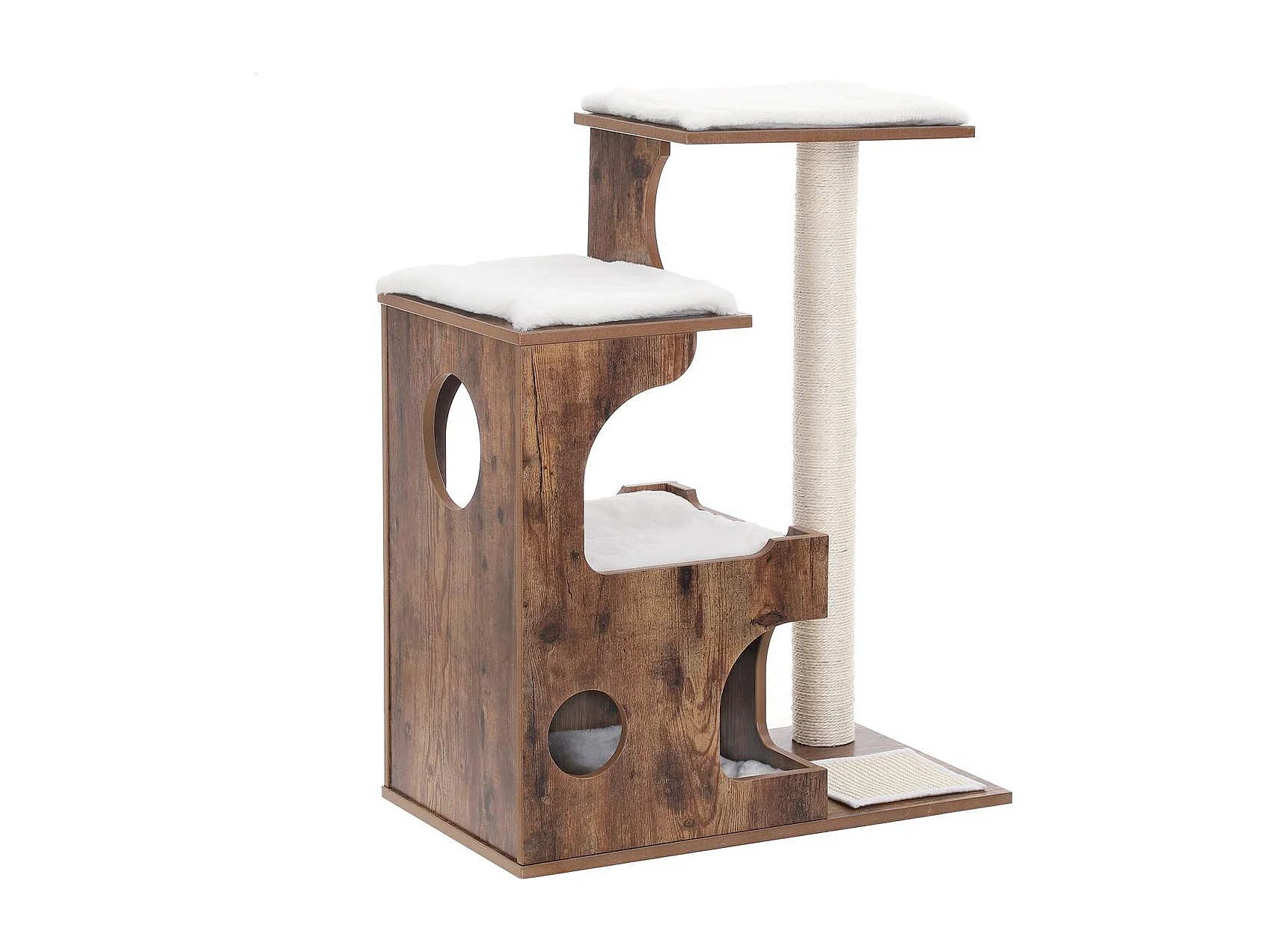 FEANDREA Kratzbaum 86 cm, mittelgroßer Katzenturm mit 3 Schlafplätzen und Höhle, Katzenwohnung aus MDF mit Holzfurnier, Sisalpfosten und waschbarem Kunstfell,