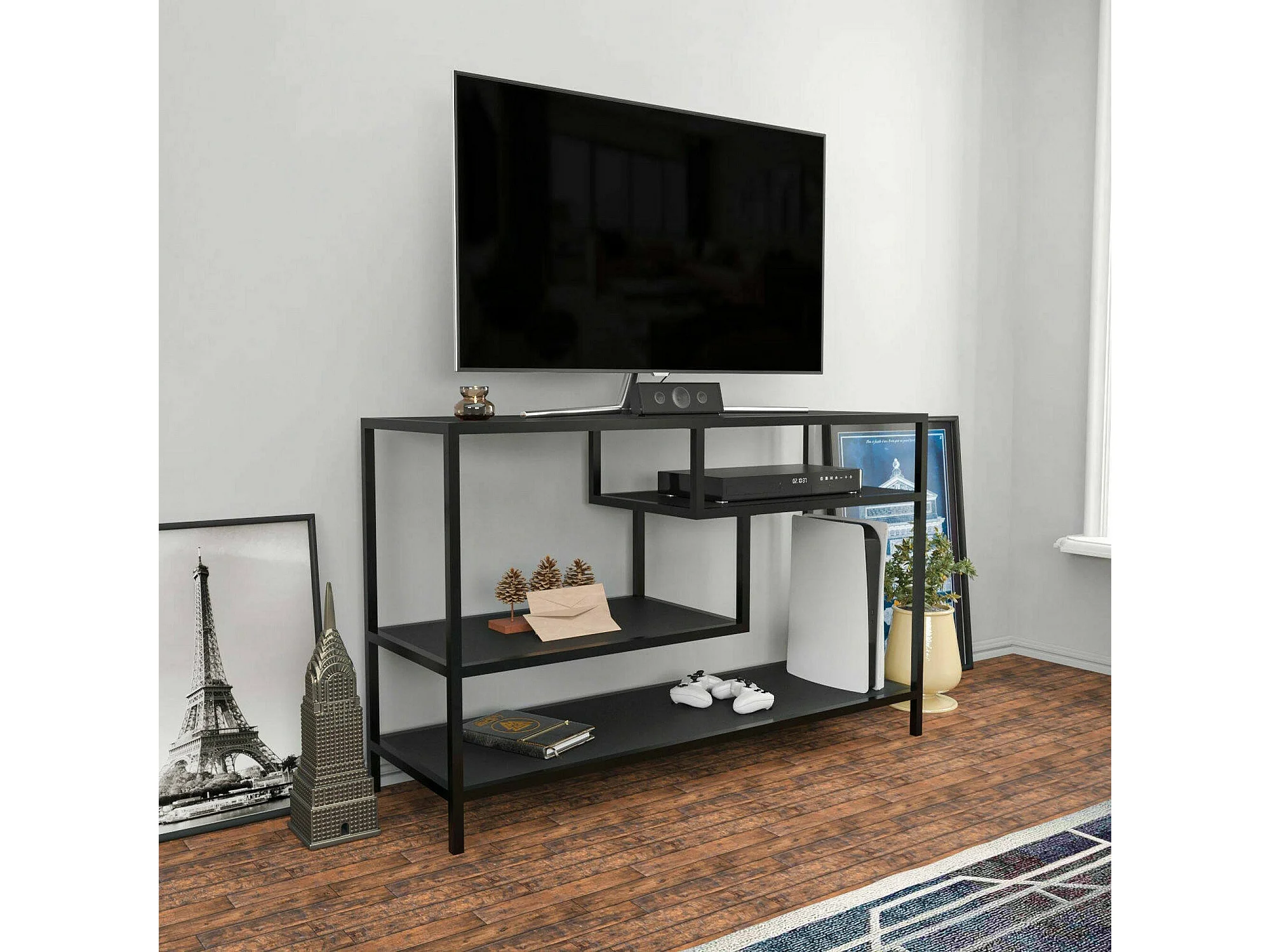 Fernsehschrank Dplizzar, Ständer für Wohnzimmerfernseher, Niedriges Wohnzimmer-Sideboard, TV-Ständerbasis, 120x39h75 cm, Anthrazit und Schwarz