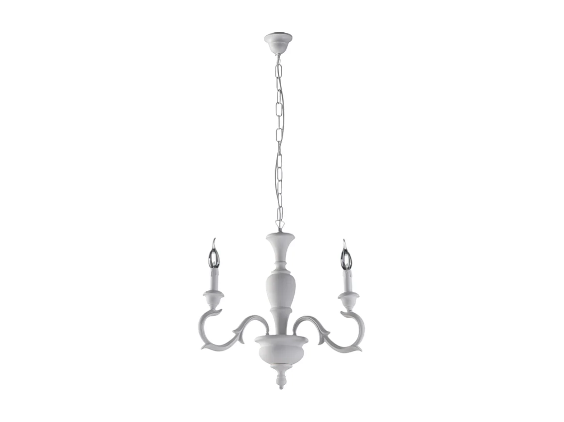 Fiorenza - Schäbiger weißer Holzkronleuchter 3 Lichter 110 - Ø43 - BL172-3-BCO