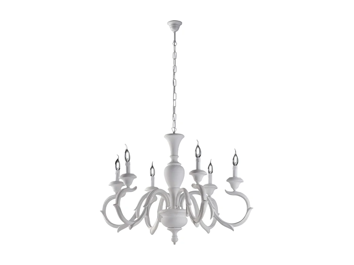 Fiorenza - Schäbiger weißer Holzkronleuchter 6 Lichter 125 - Ø91 - BL172-6-BCO