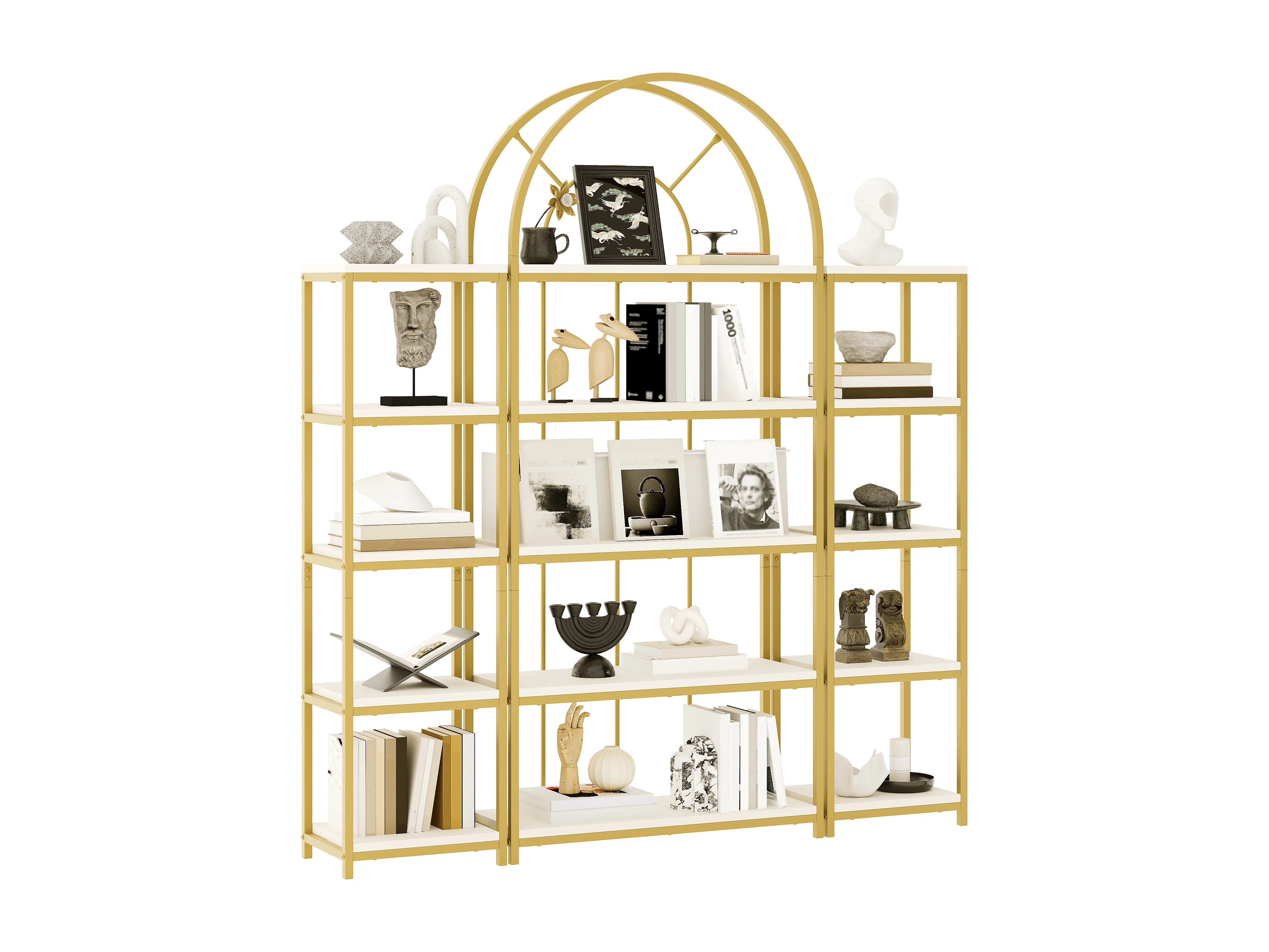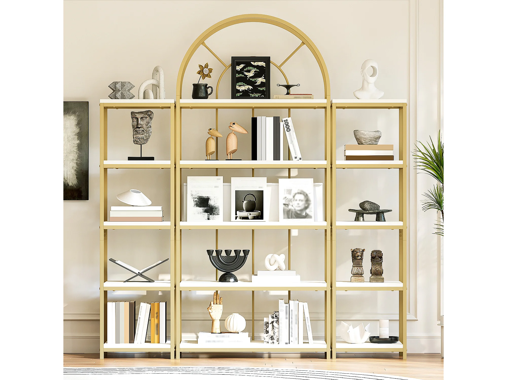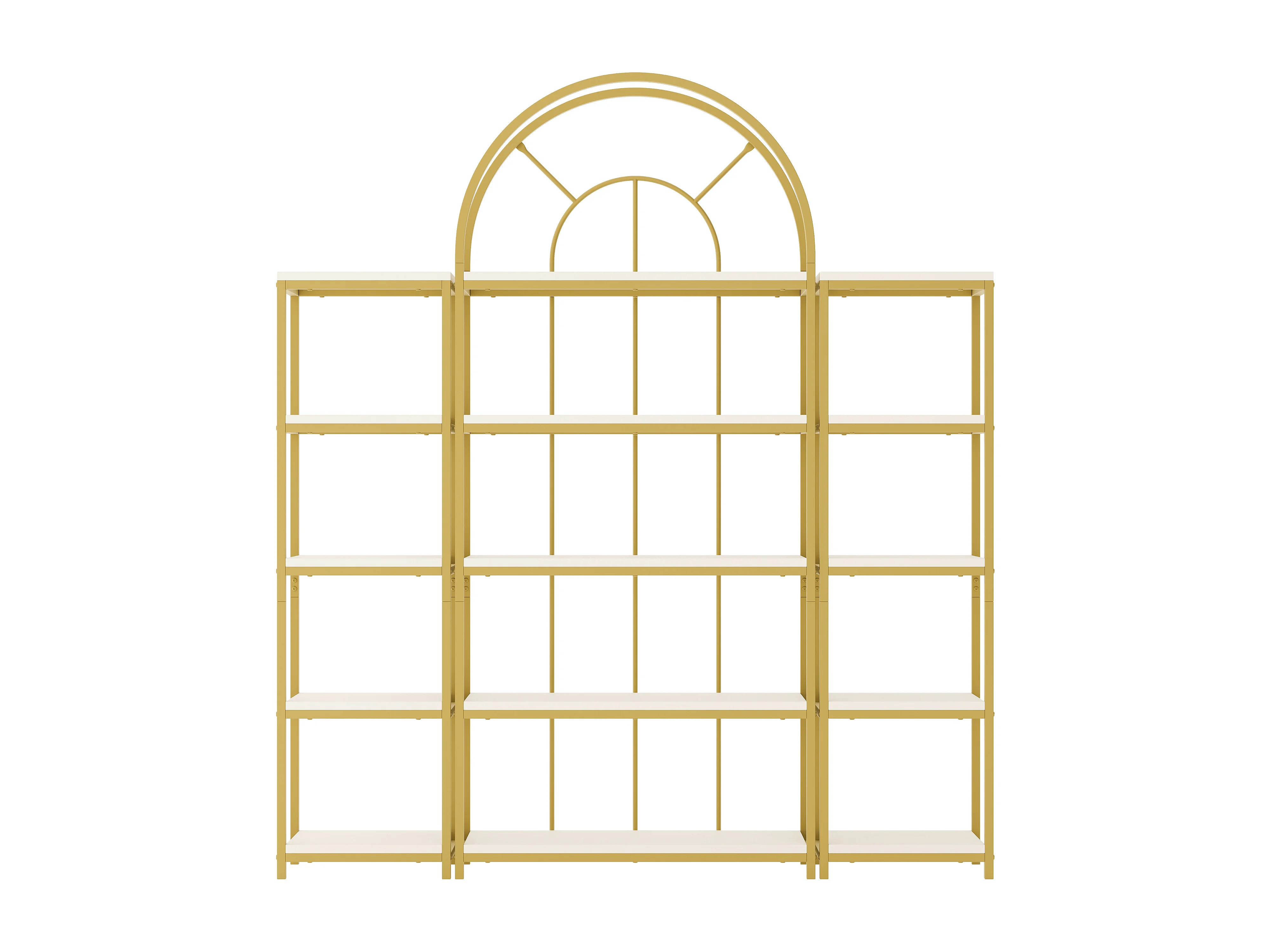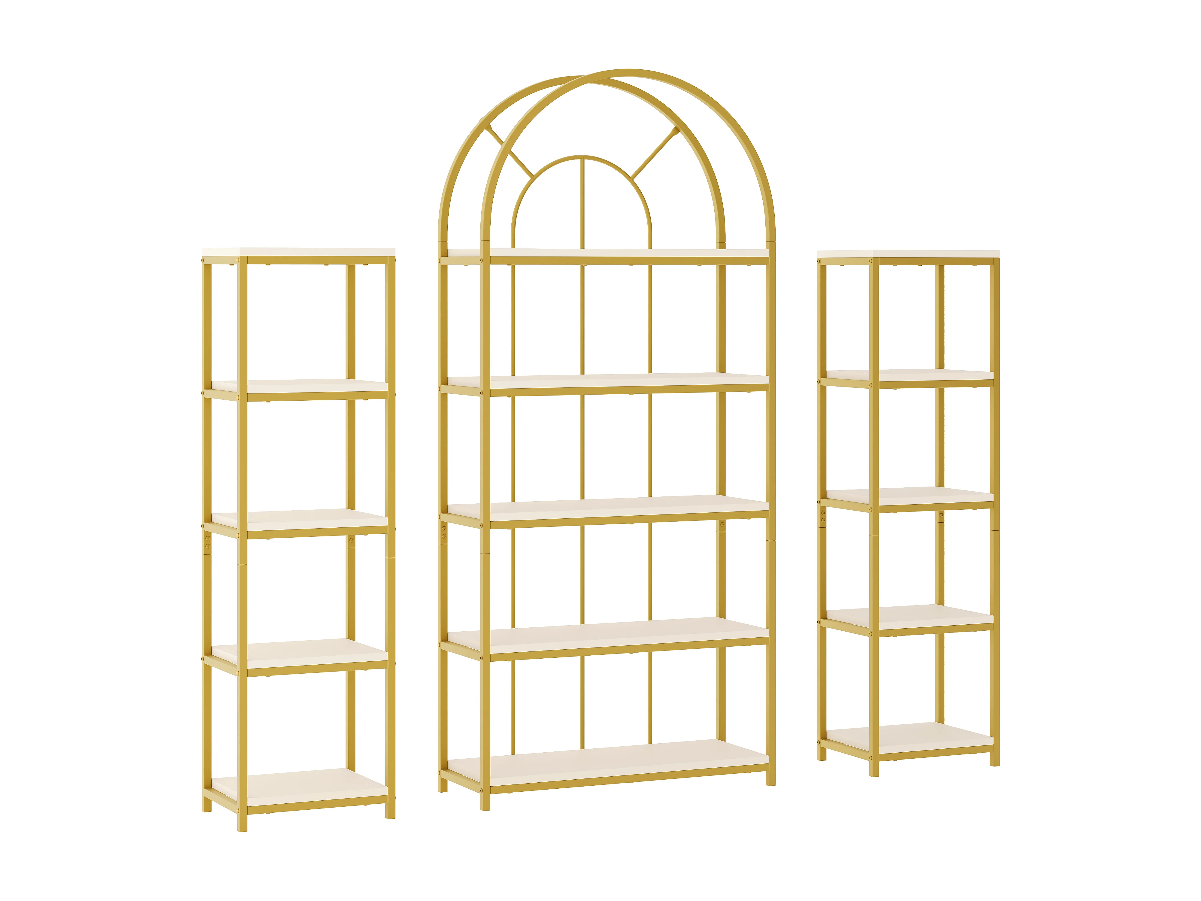 Freistehendes Regal – 163 x 30 x 184 cm – goldfarbenes Metallgestell und MDF-Regalböden – 3-teilig – goldfarben