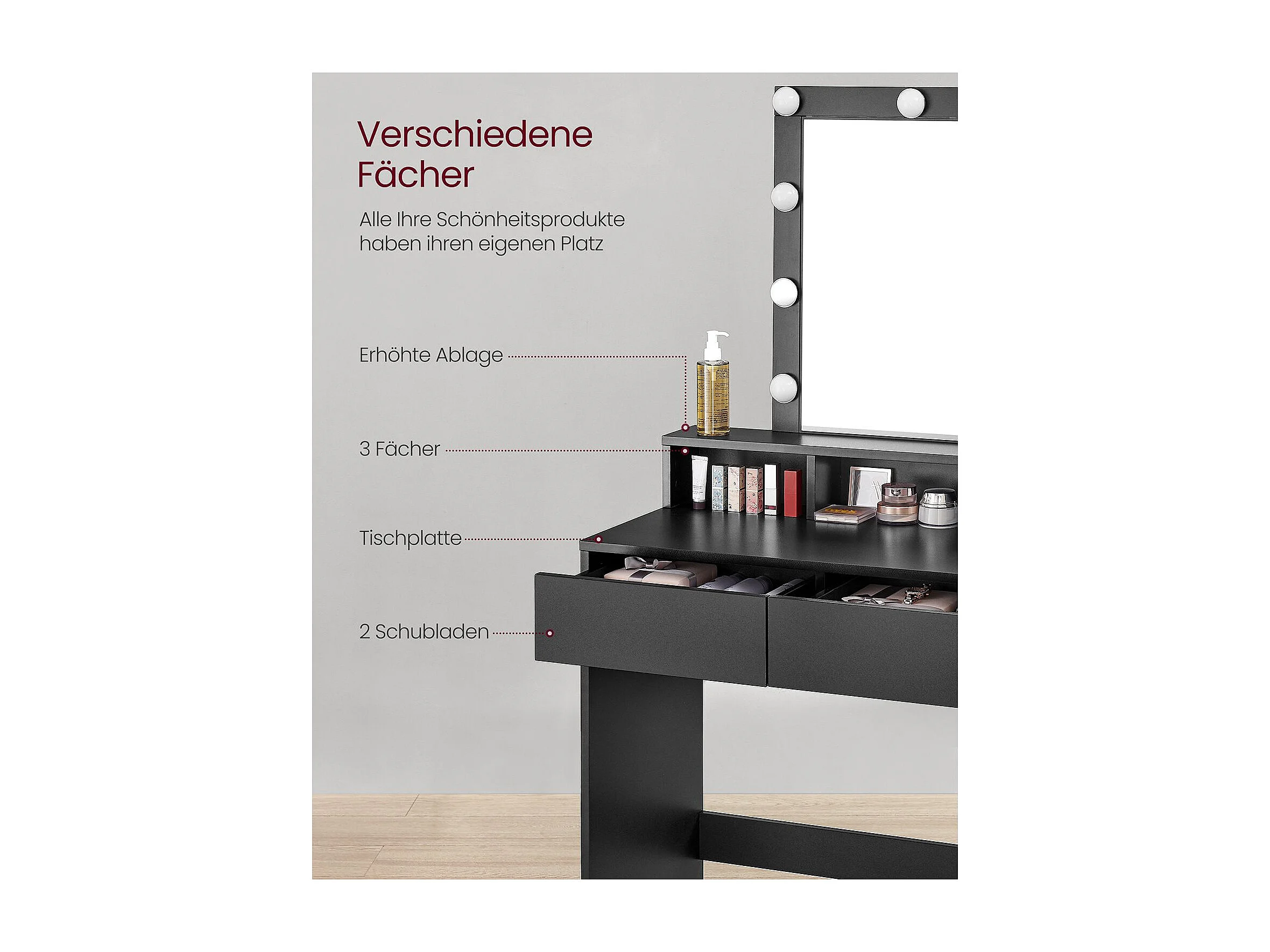 Frisiertisch 80x40x145 cm schwarz RDT114T16