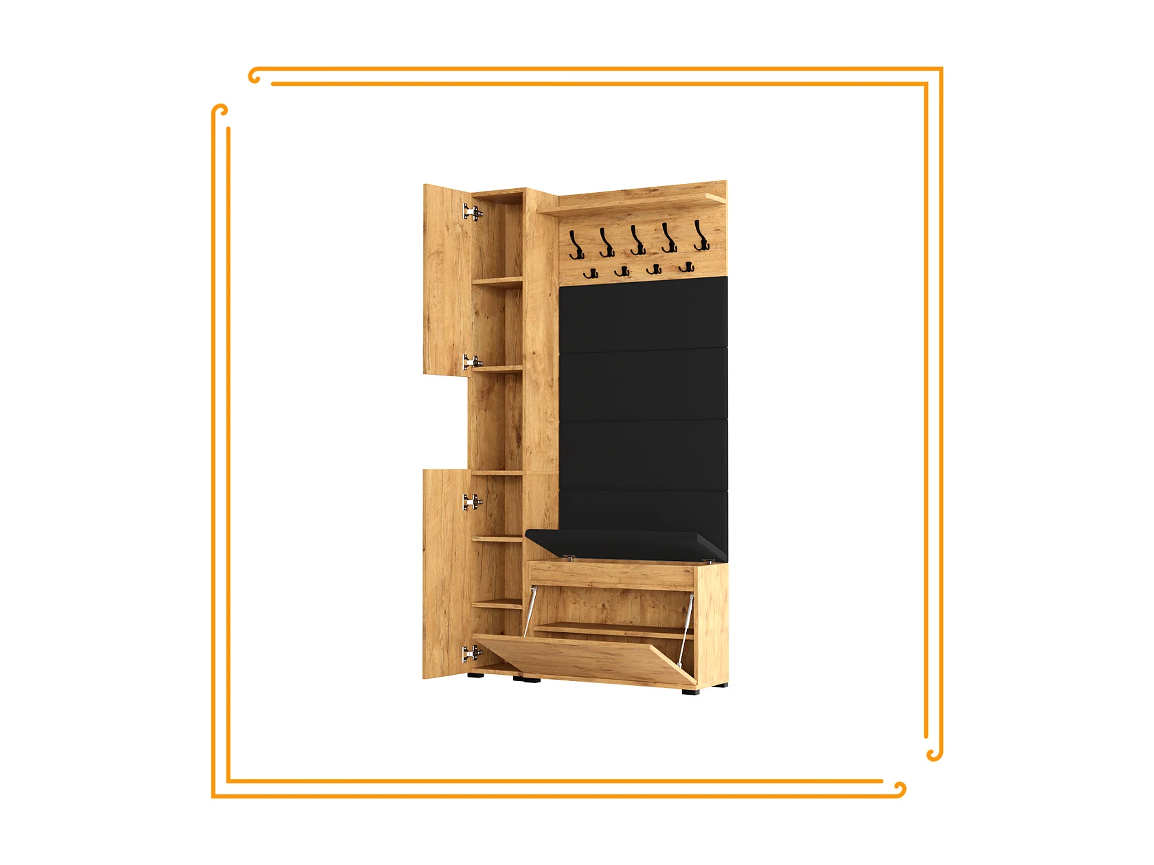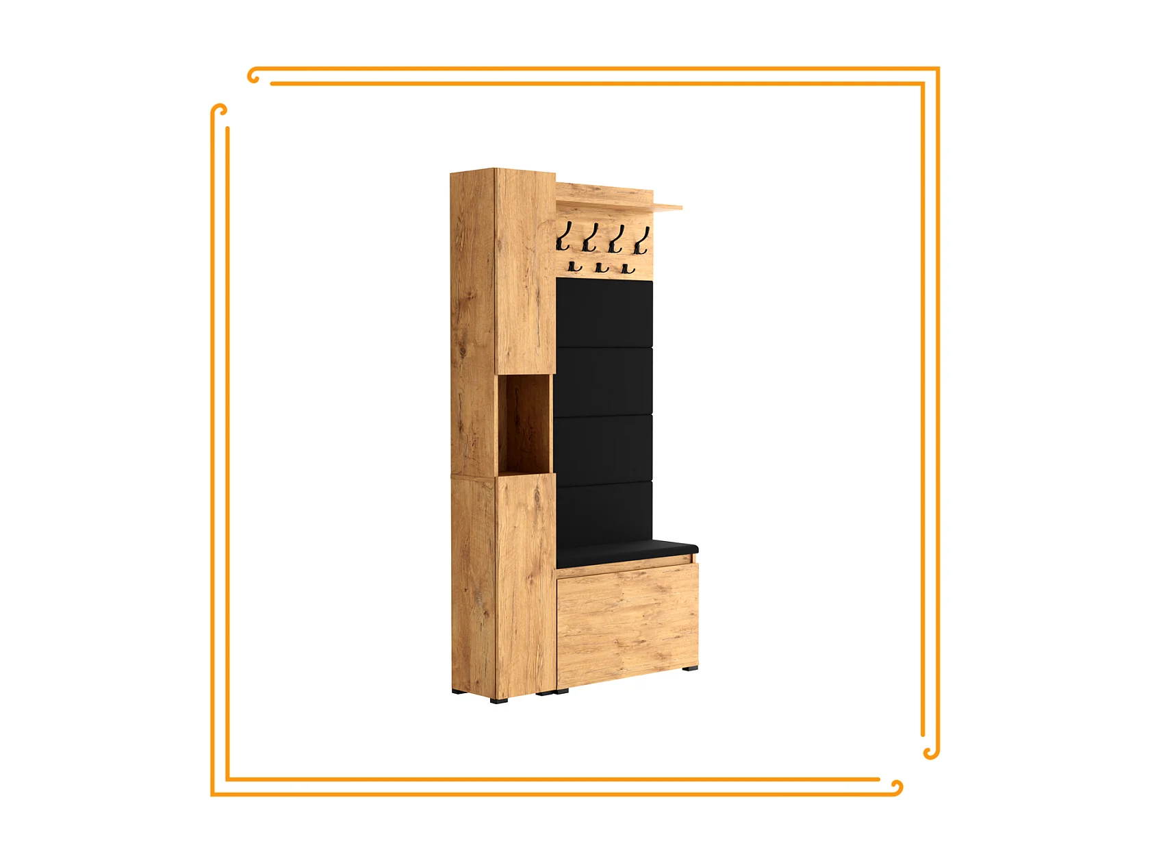 Garderobe für den Flur mit Sitzbank, Kleiderhaken, Polsterpaneel, Golden Craft und Schwarz