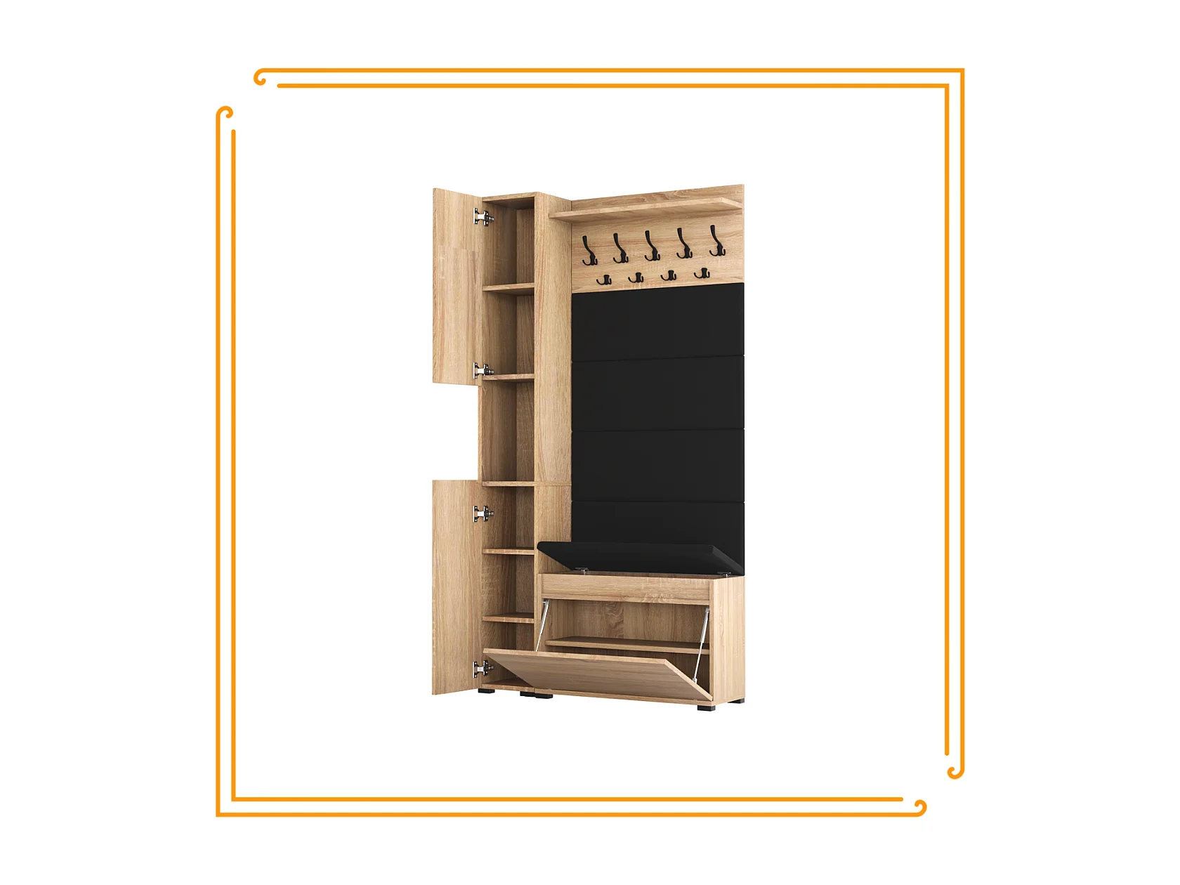 Garderobe für den Flur mit Sitzbank, Kleiderhaken, Polsterpaneel, Weiß