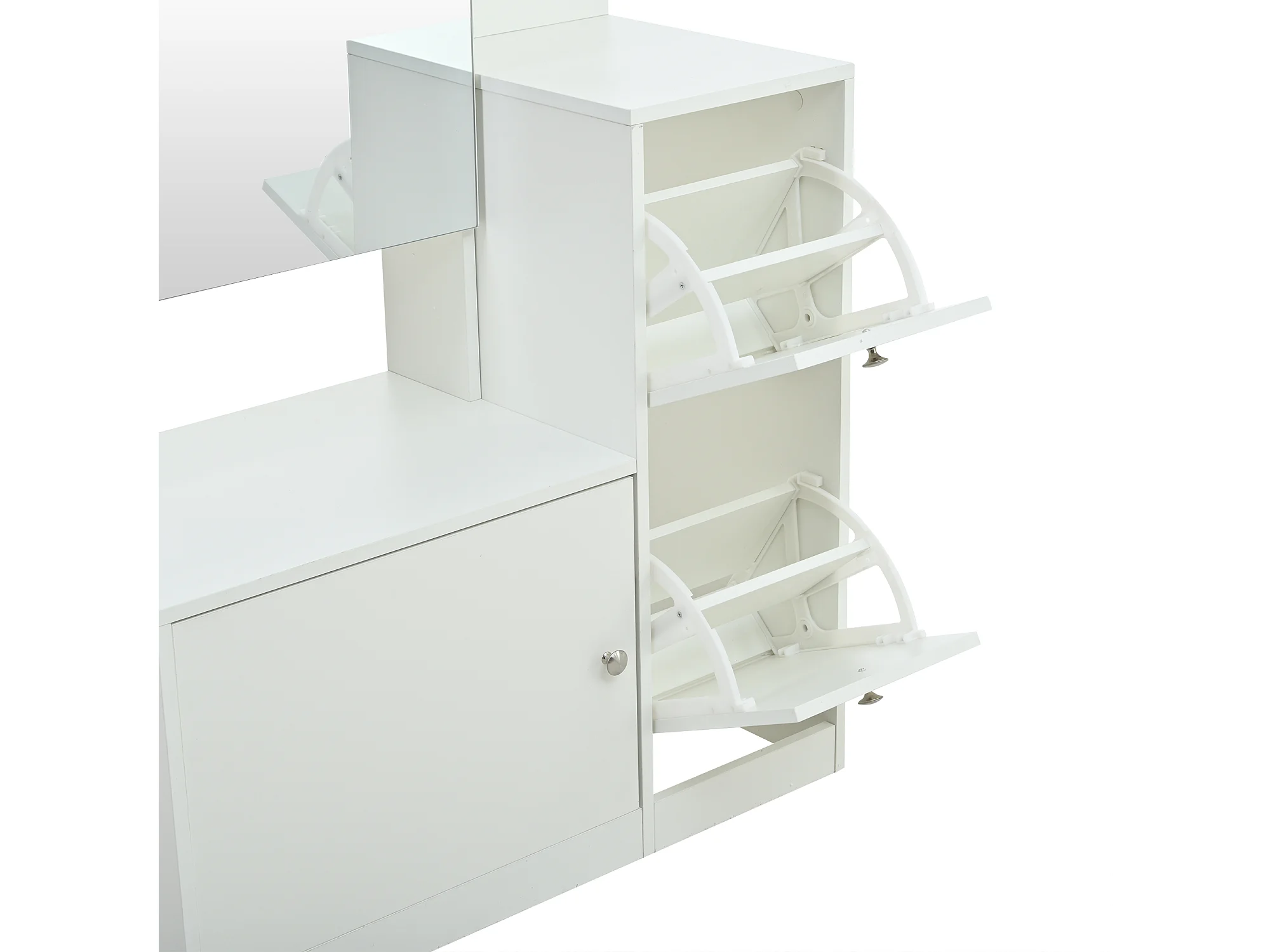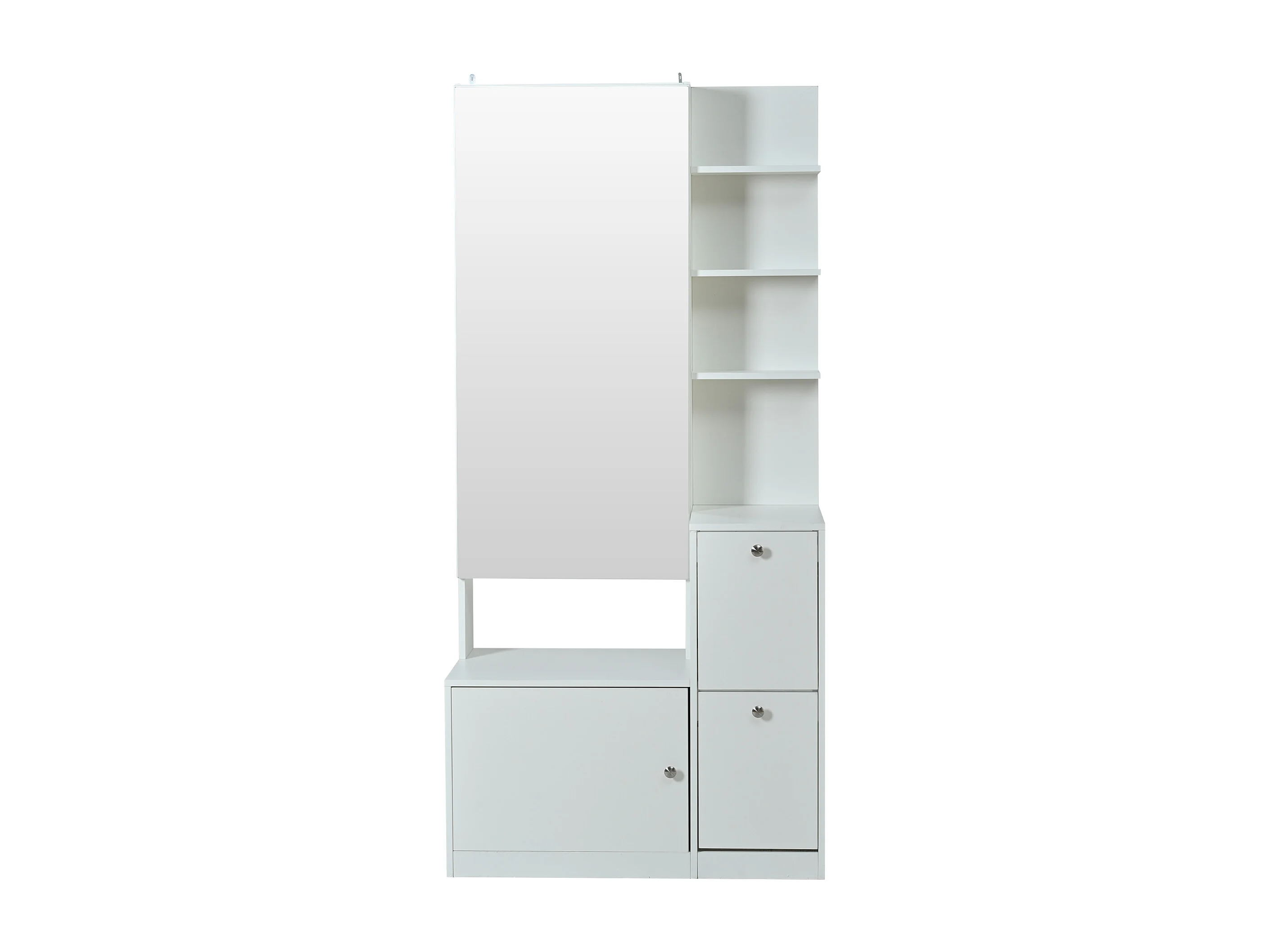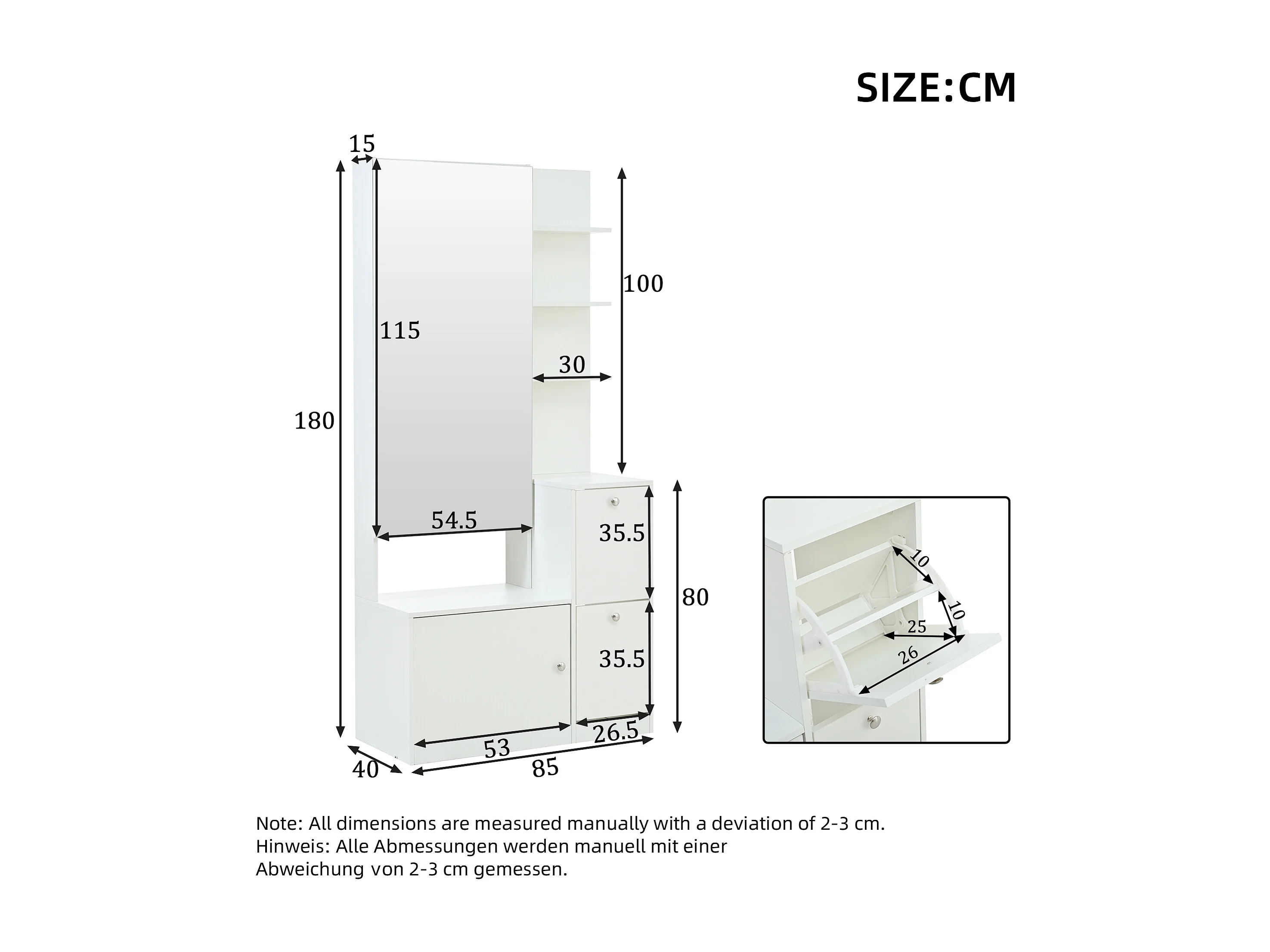 Garderoben-Set für den Eingangsbereich 85x40x180 cm - mit Spiegel und 2 Schuhregalen - 2 Türen - offene Regale - weiß