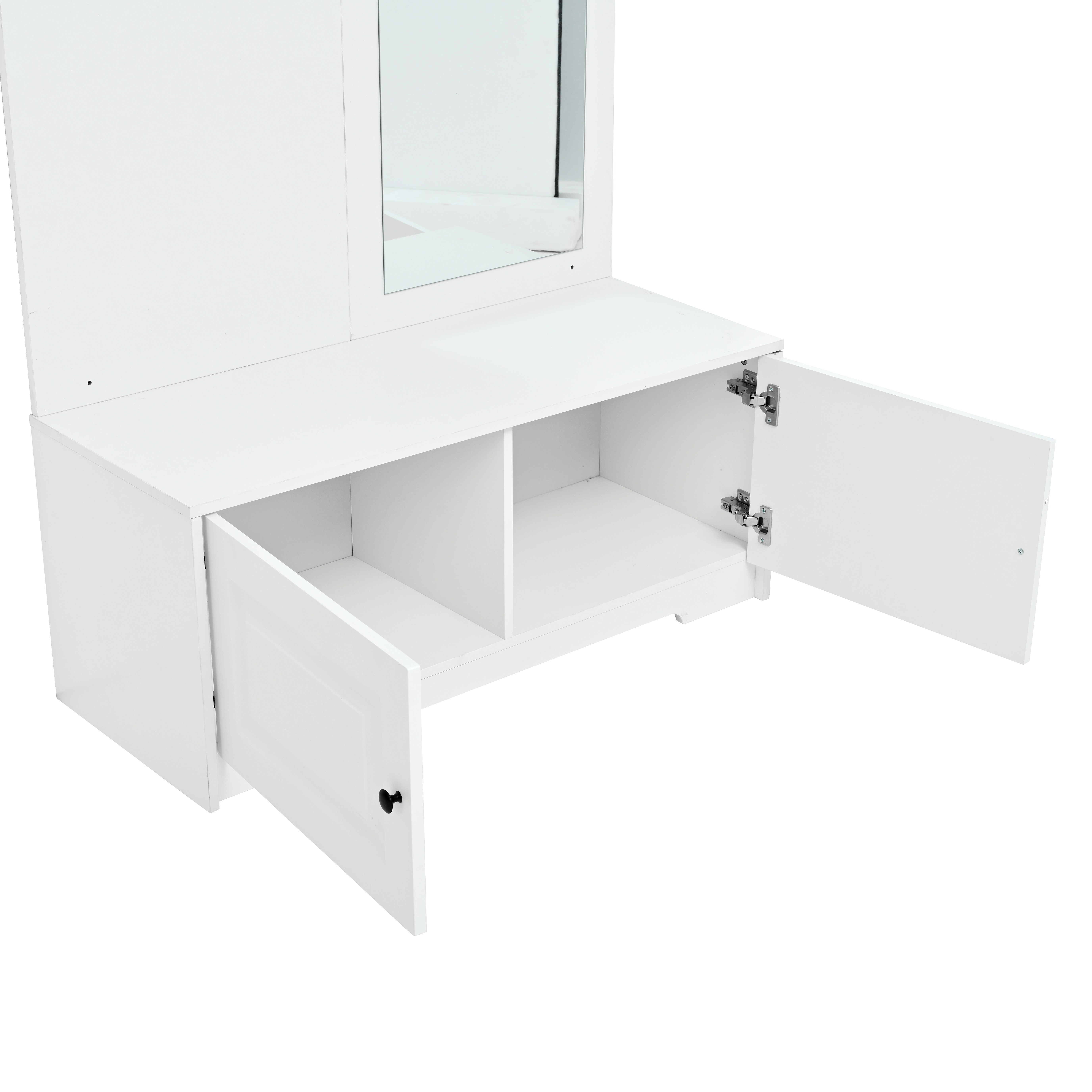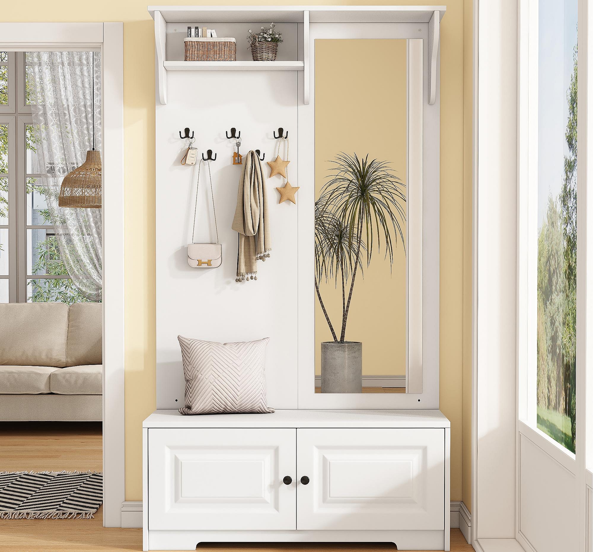 Garderobenset für den Eingang 100x40x180 cm - mit Spiegel und 5 Kleiderhaken - 2 Türen - mit Schuhschrank und Regalen - Weiß